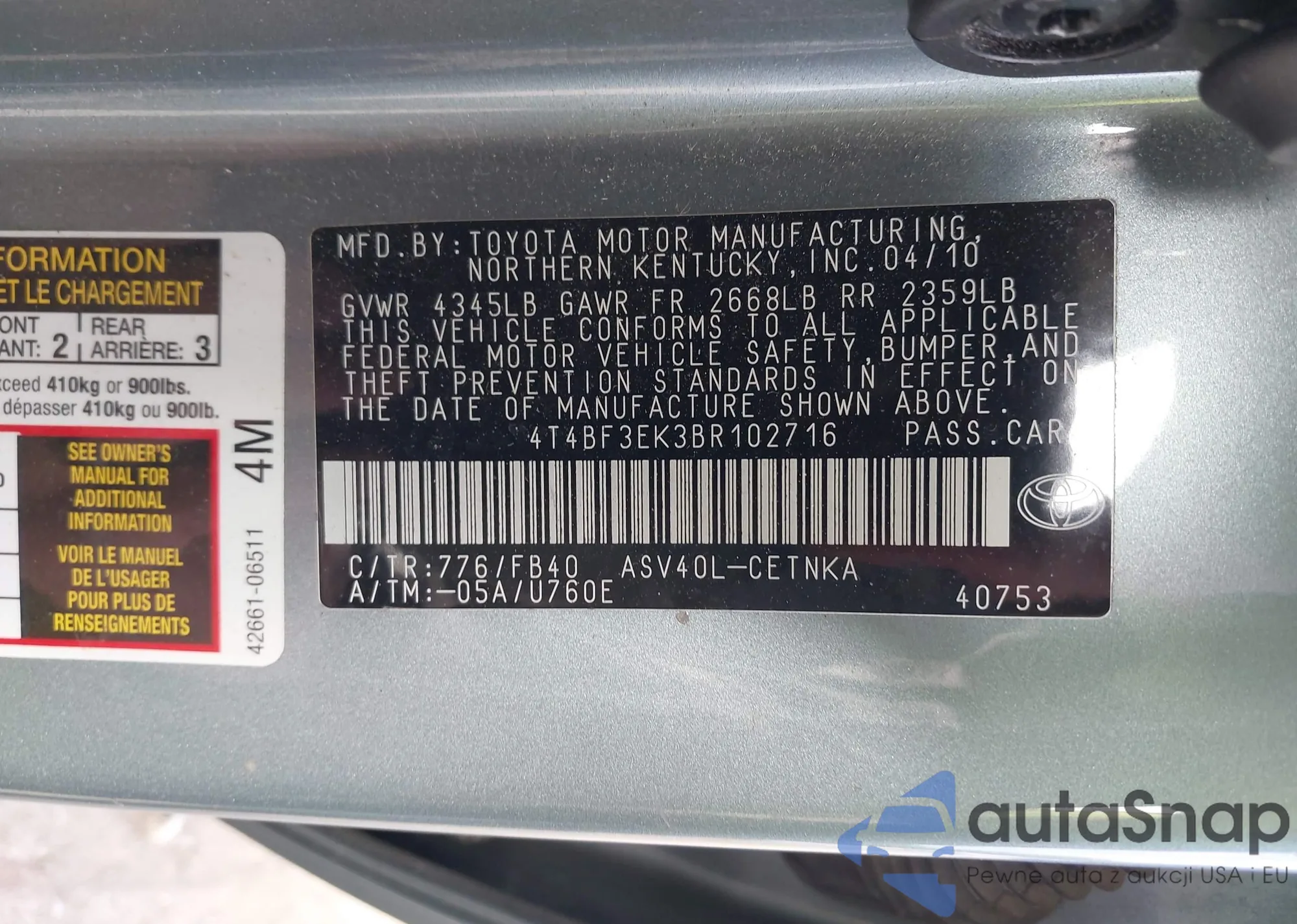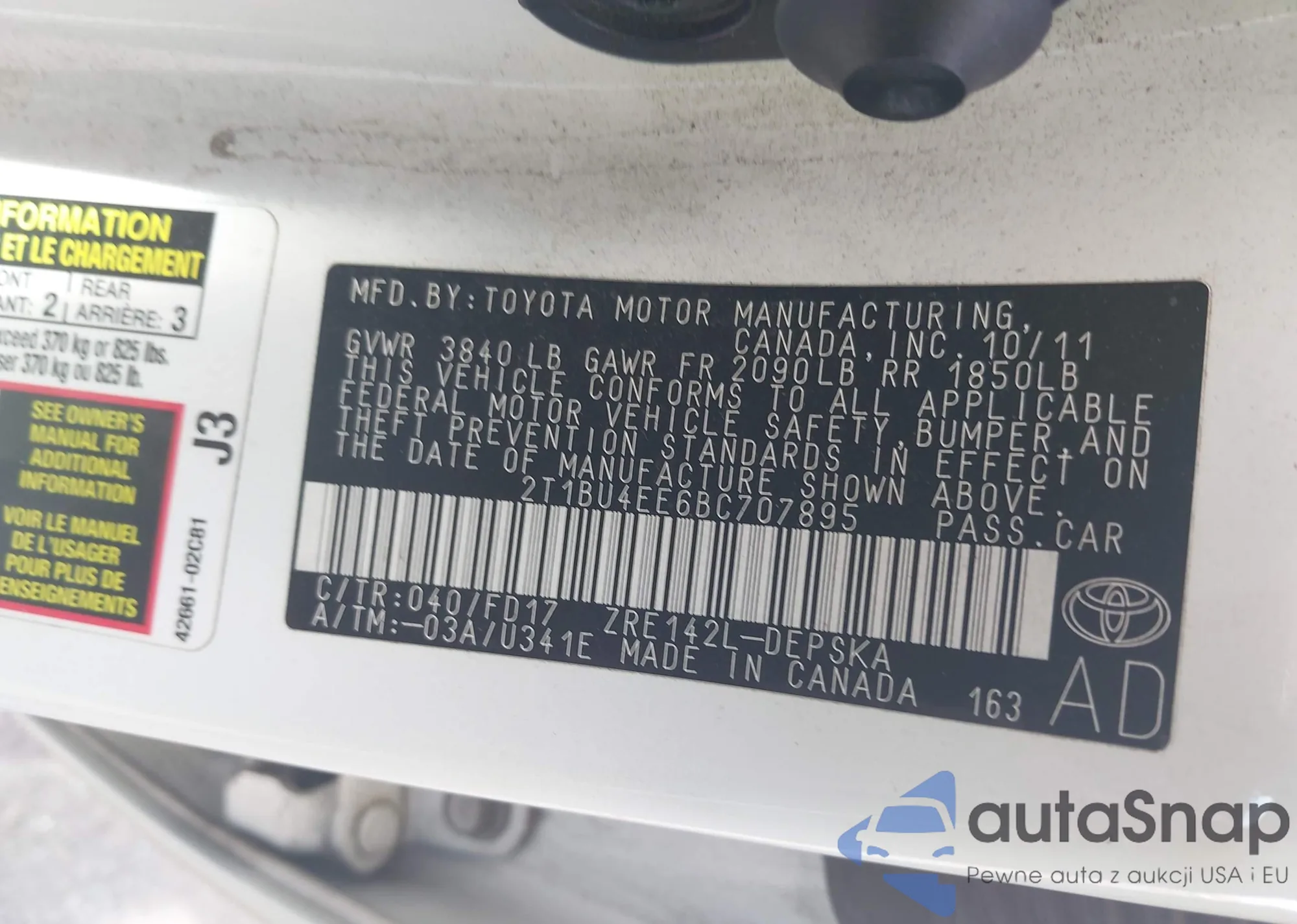 LOT: 43672811 VIN: 4T1BK36BX7U176646