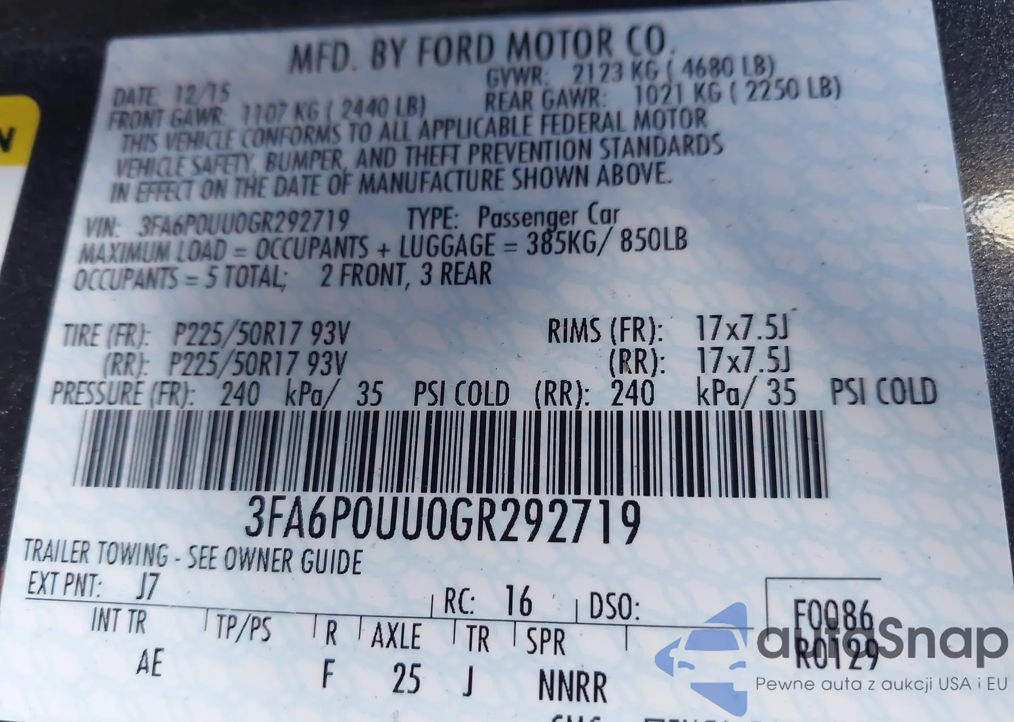 • VIN 3FA6P0UU0GR292719