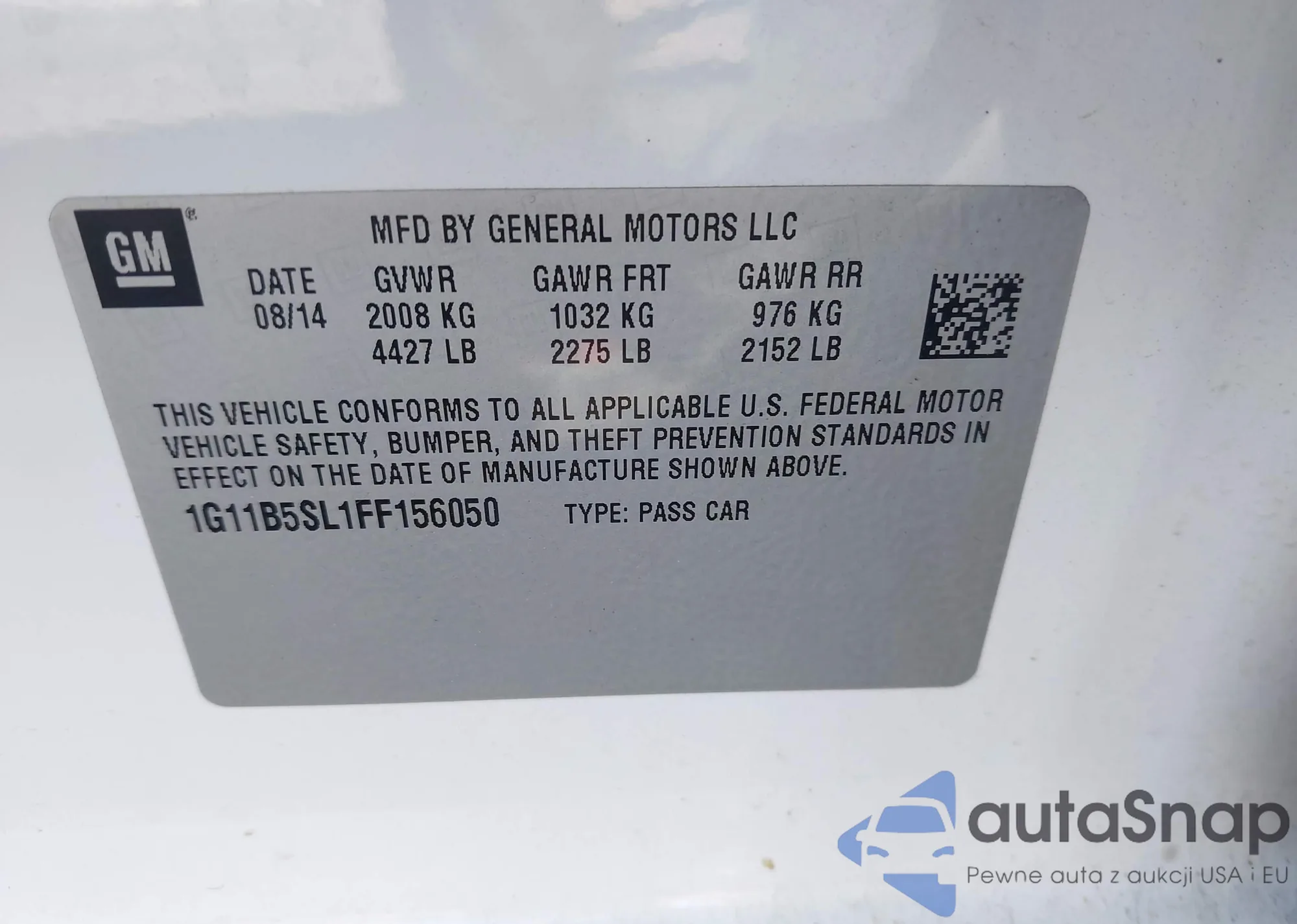 LOT: 43615038 VIN: 1G11B5SL1FF156050
