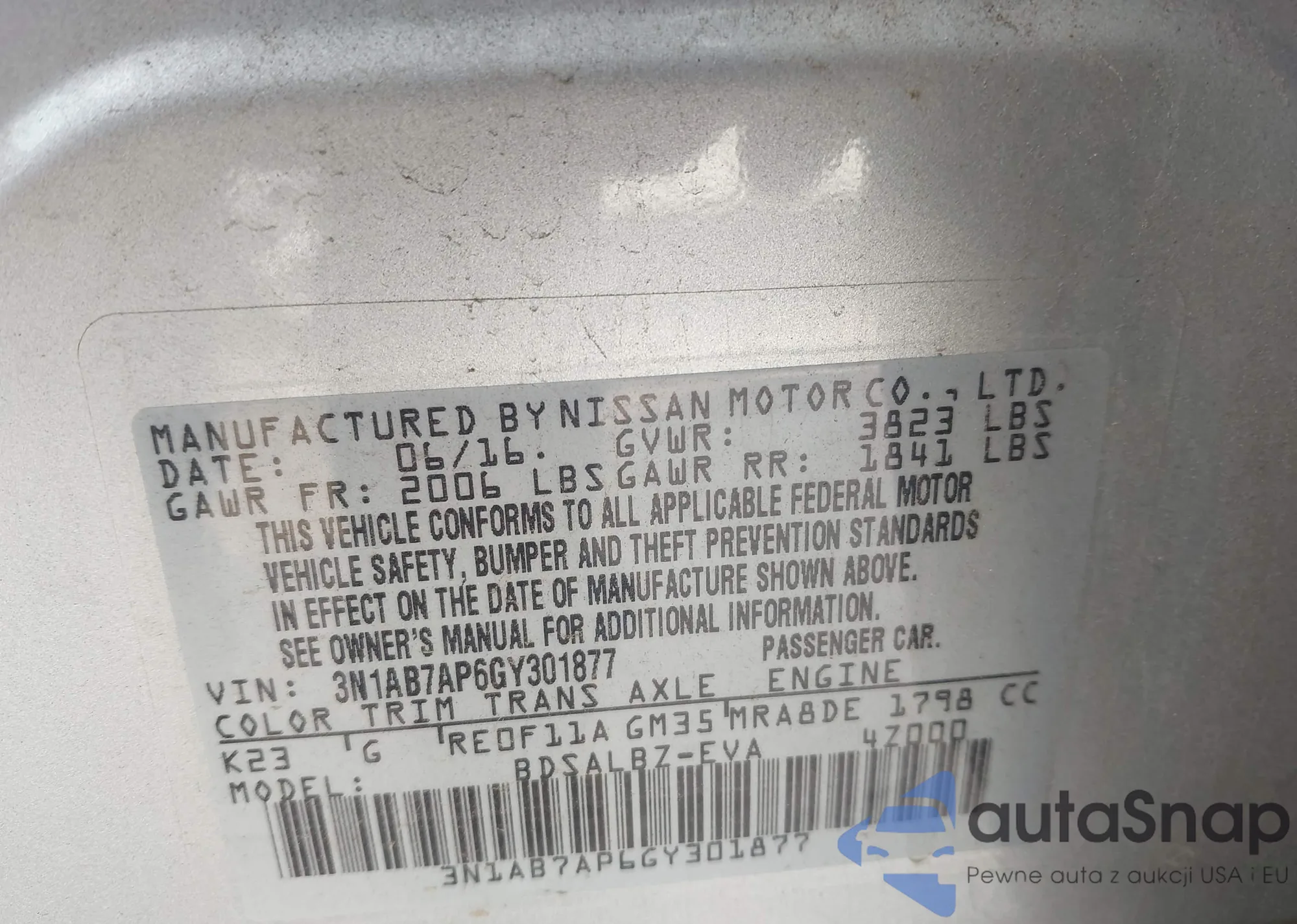 • VIN 3N1AB7AP6GY301877