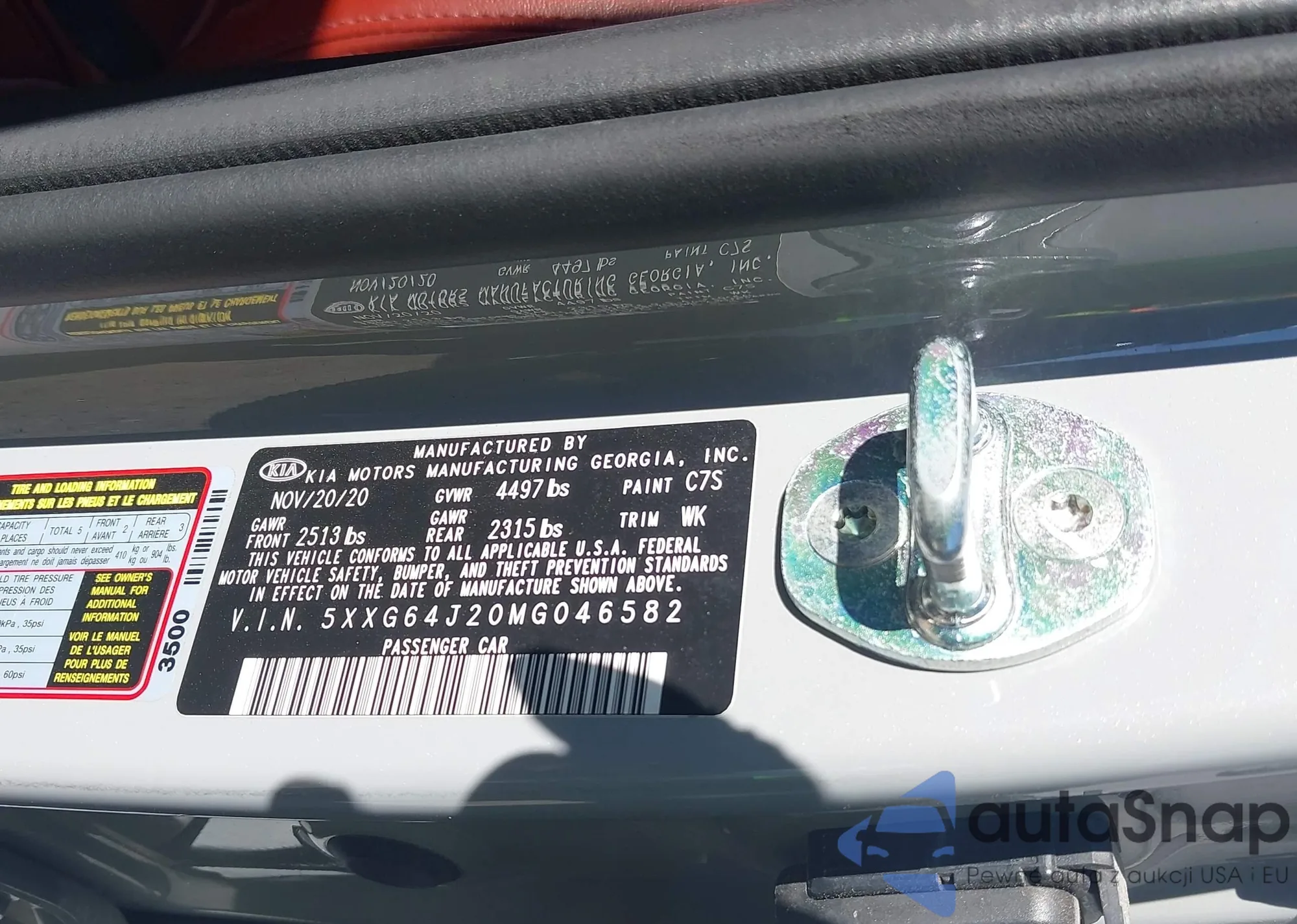 LOT: 43744301 VIN: 1HGCV3F42MA011559