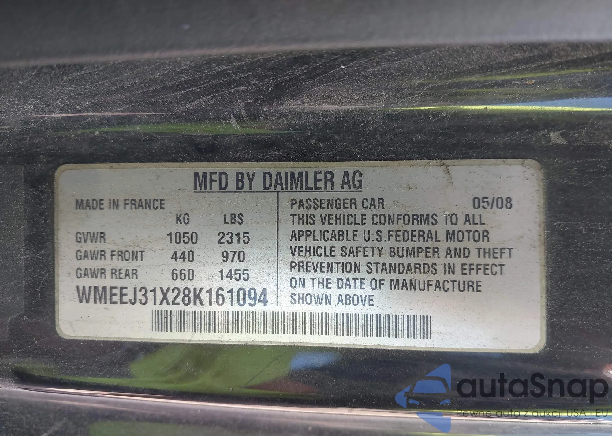 LOT: 43330478 VIN: WMEEJ31X28K161094