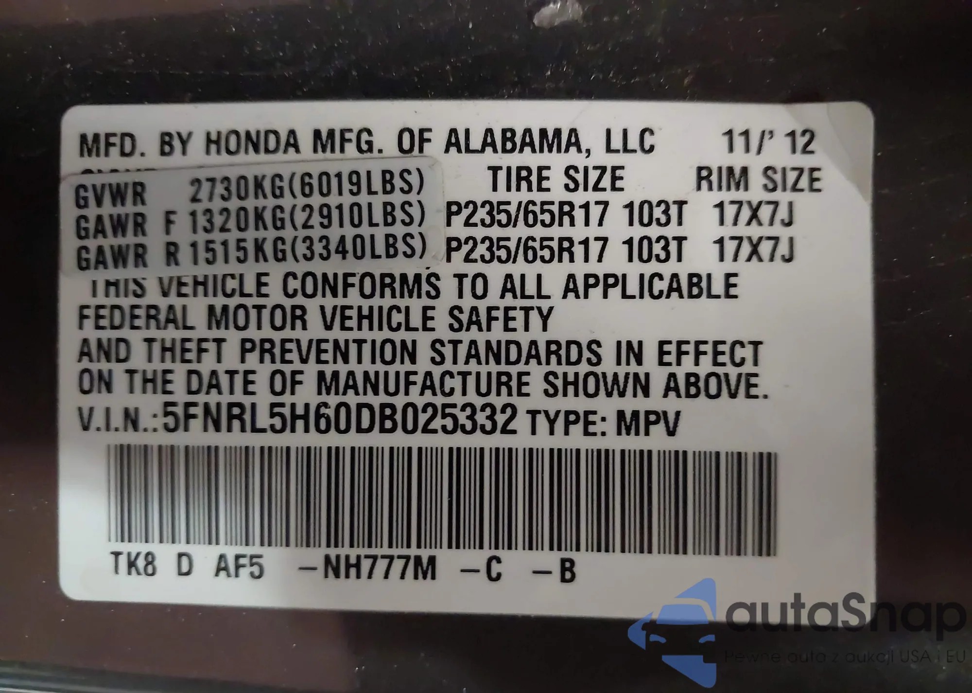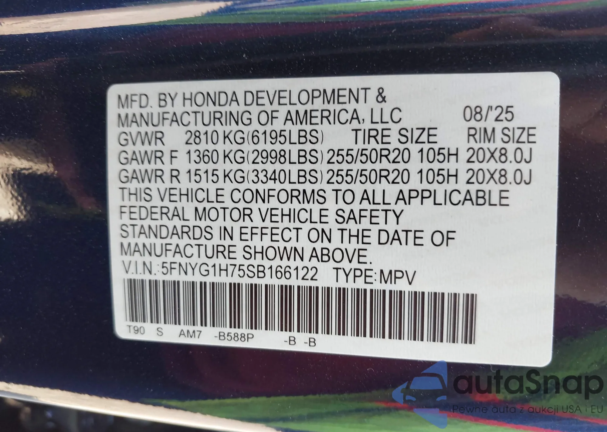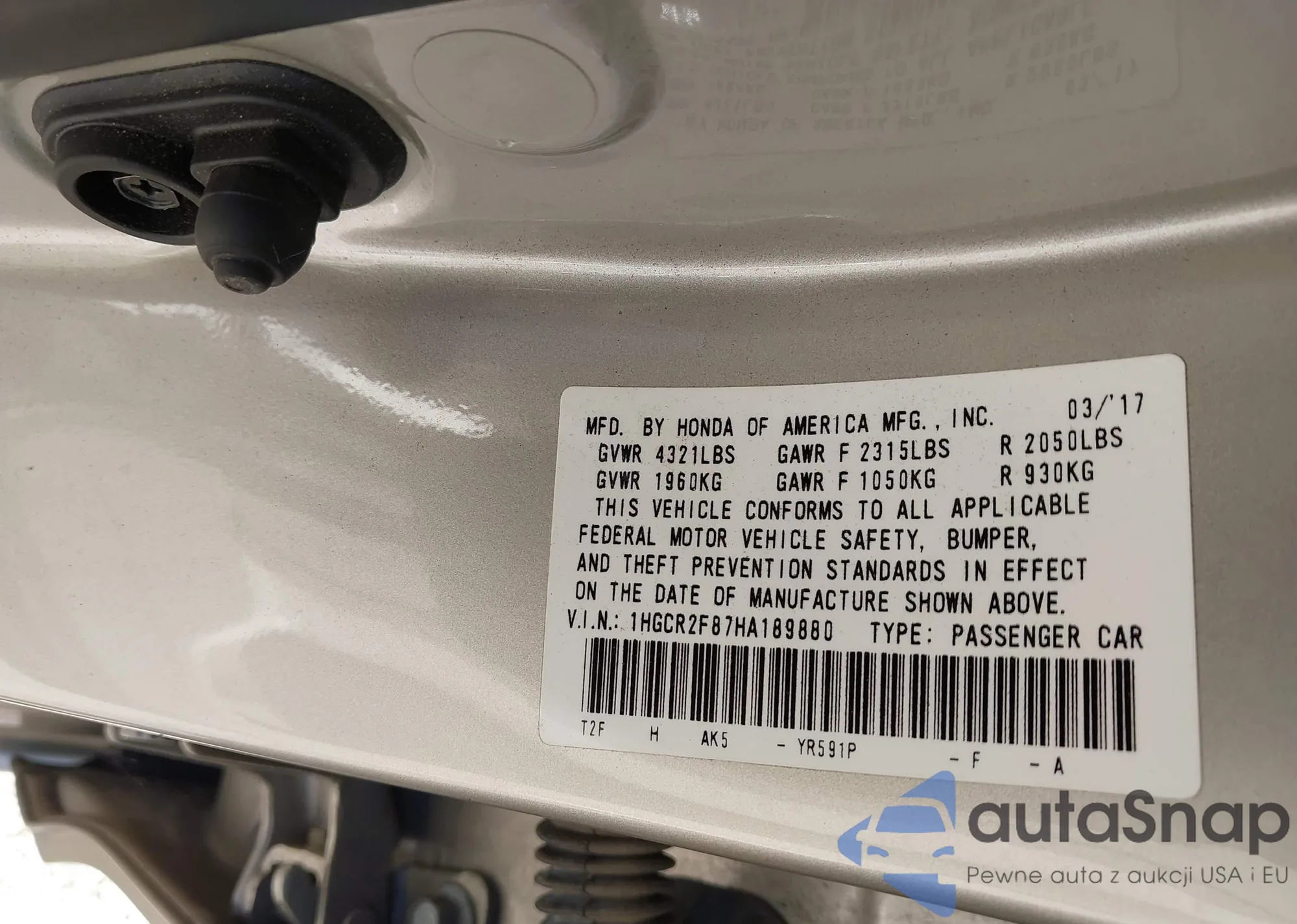 LOT: 43442821 VIN: 1HGCP26878A094967