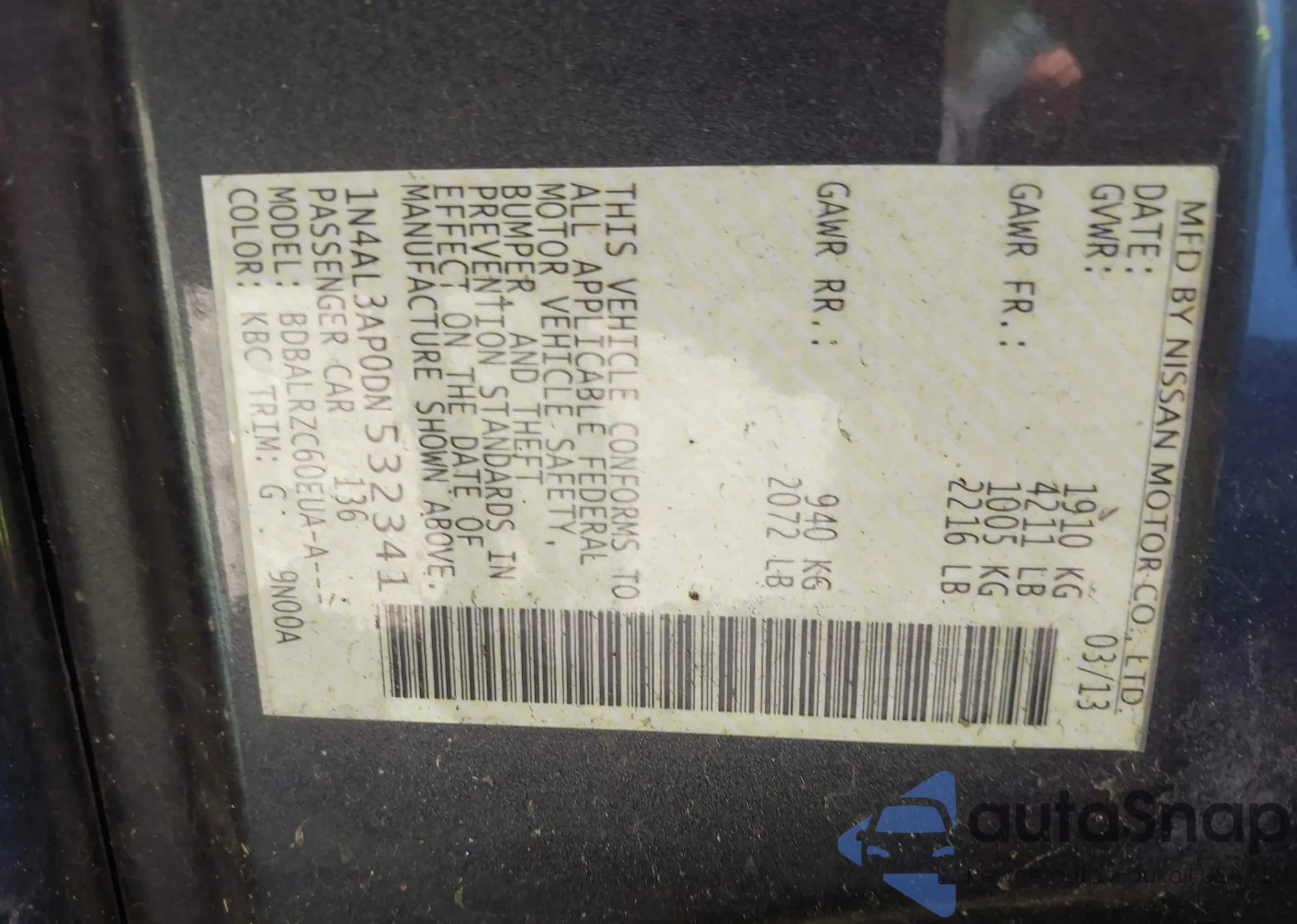 LOT: 43419432 VIN: 1N4AL3AP0DN532341