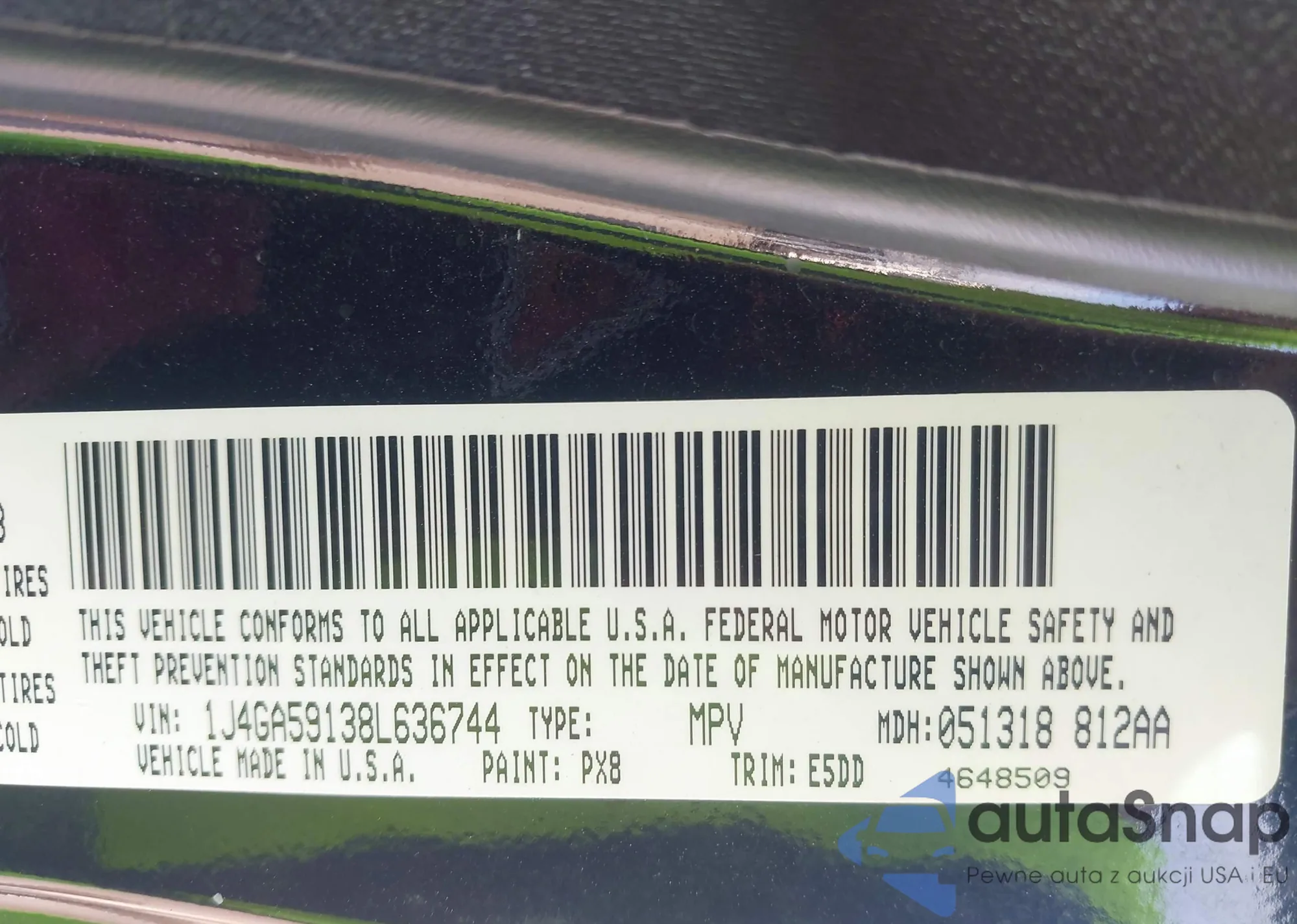 LOT: 43251637 VIN: 1J4GA59138L636744