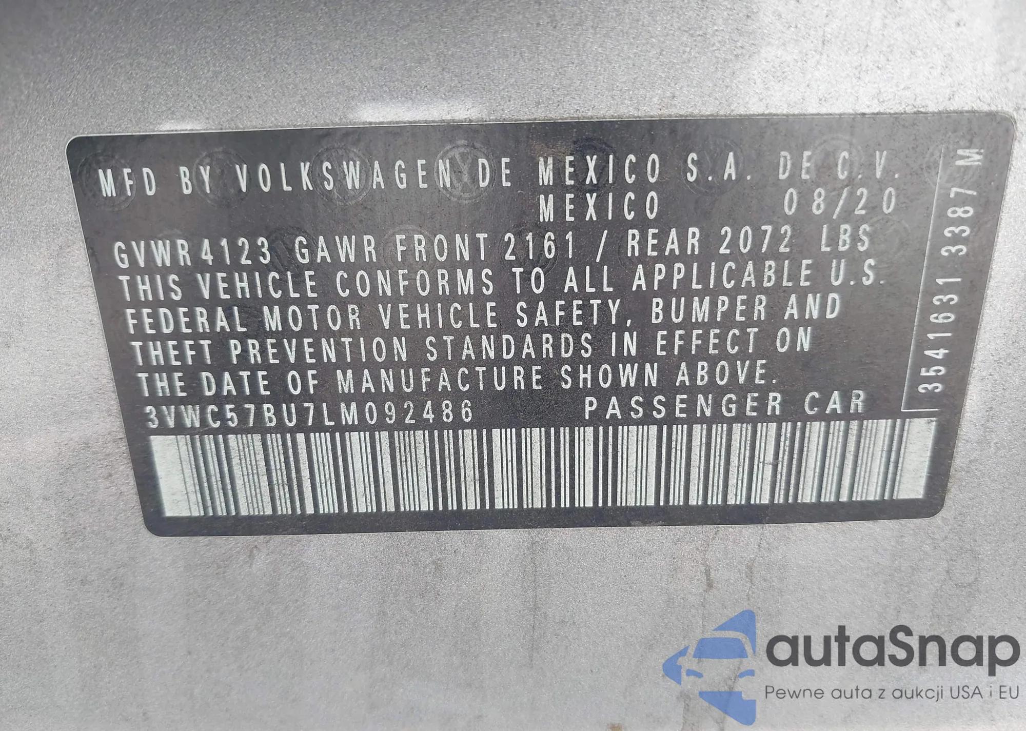 • VIN 1N4BL4DV7PN323493