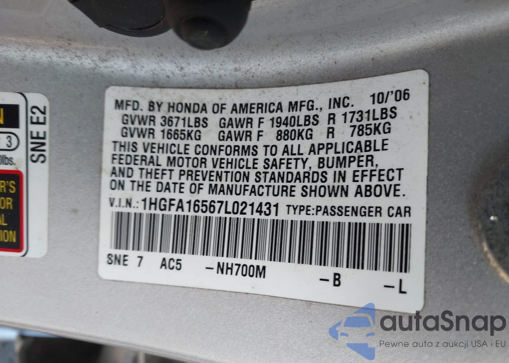 LOT: 43342675 VIN: 1G1FF1R76M0138574
