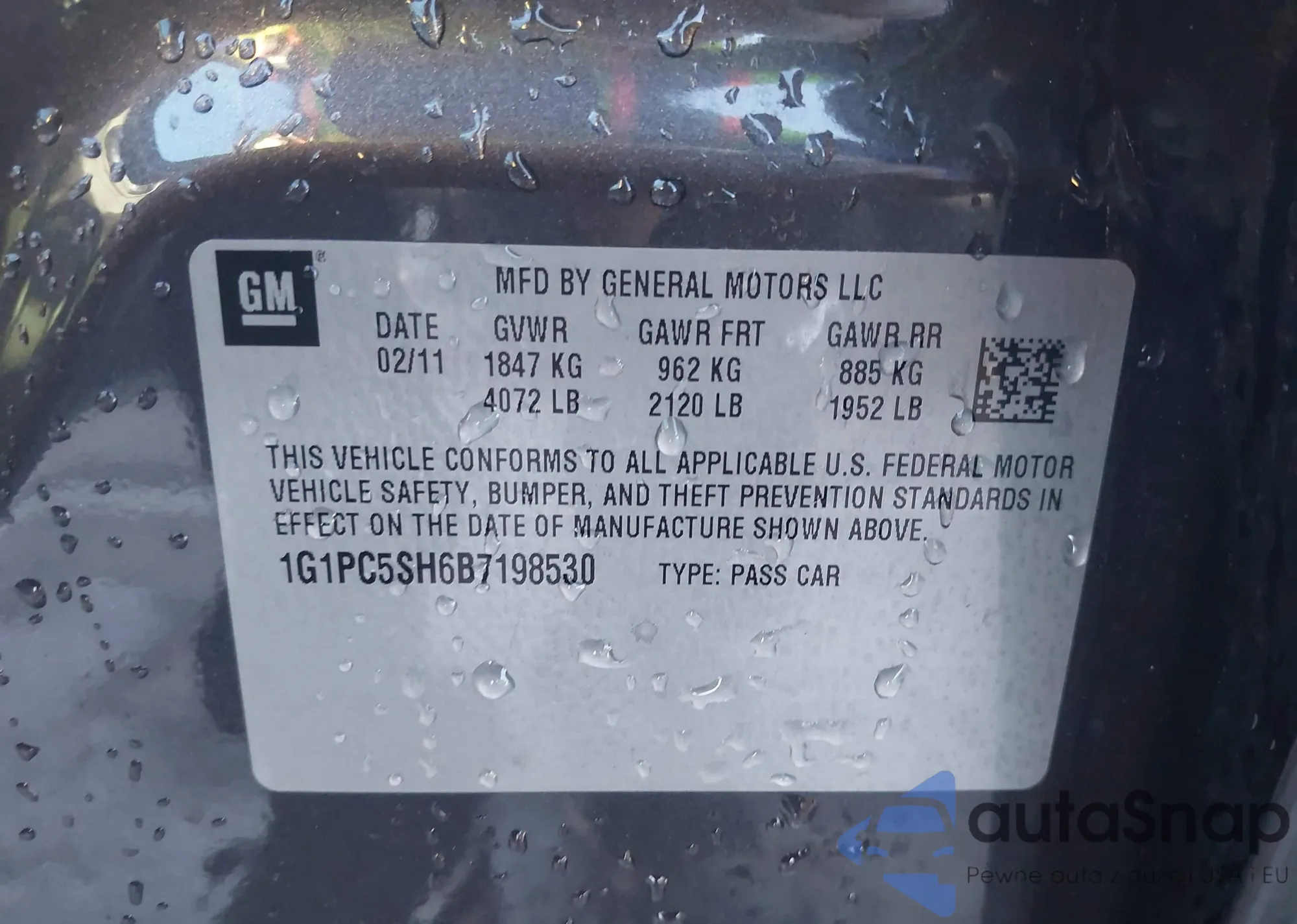 • VIN 1G1PC5SH6B7198530