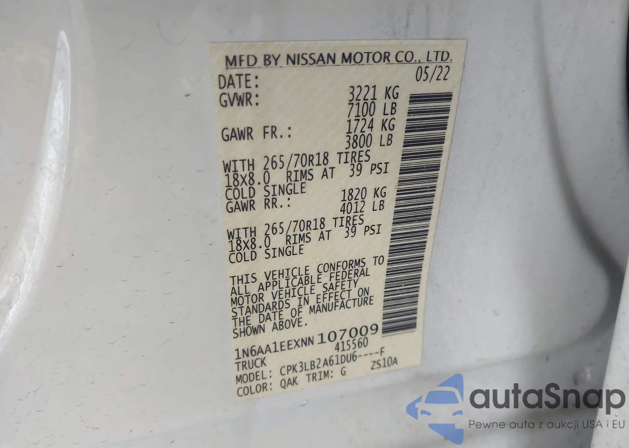 • VIN 1N6AA1EEXNN107009