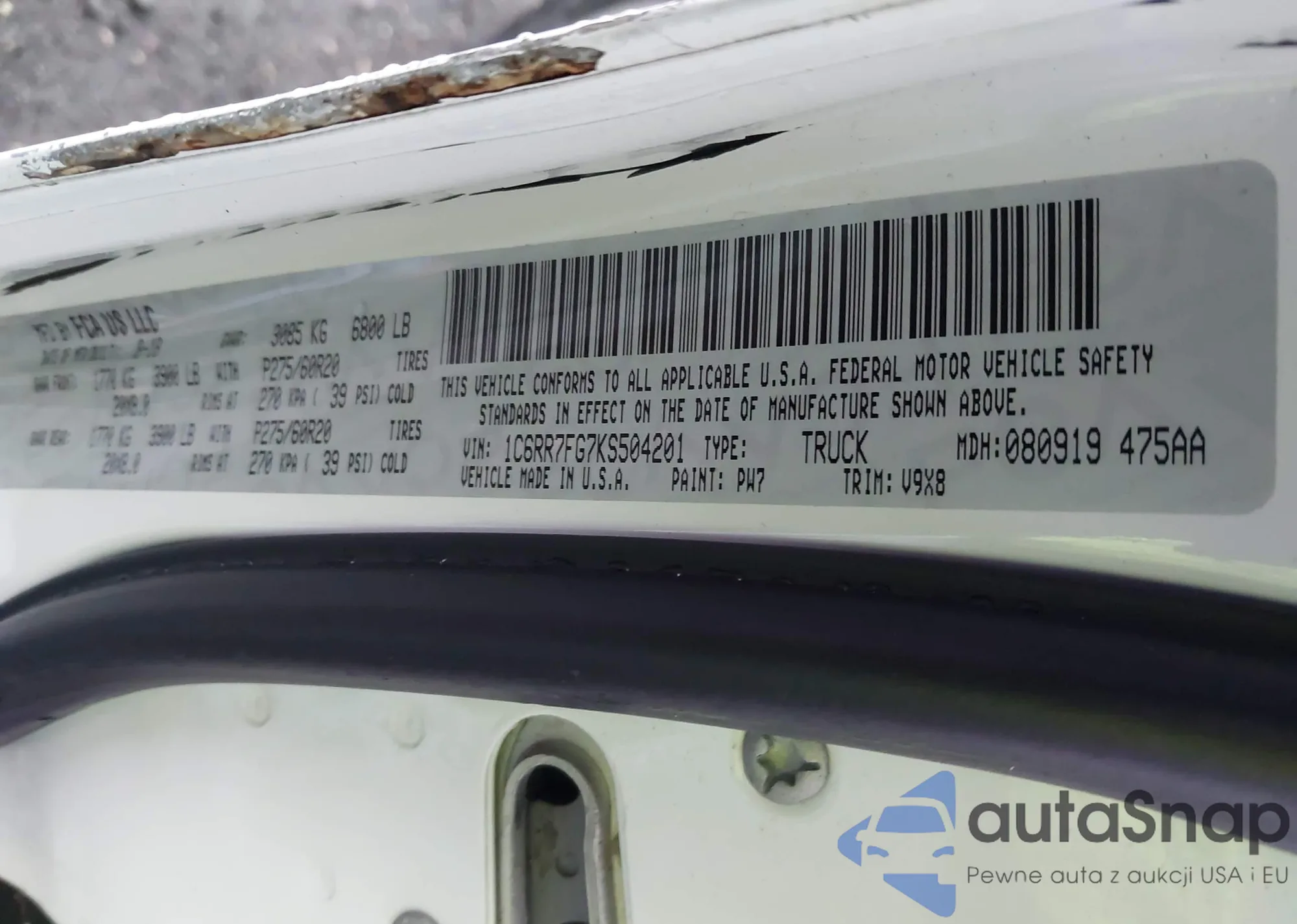 • VIN 1C6RR7FG7KS504201