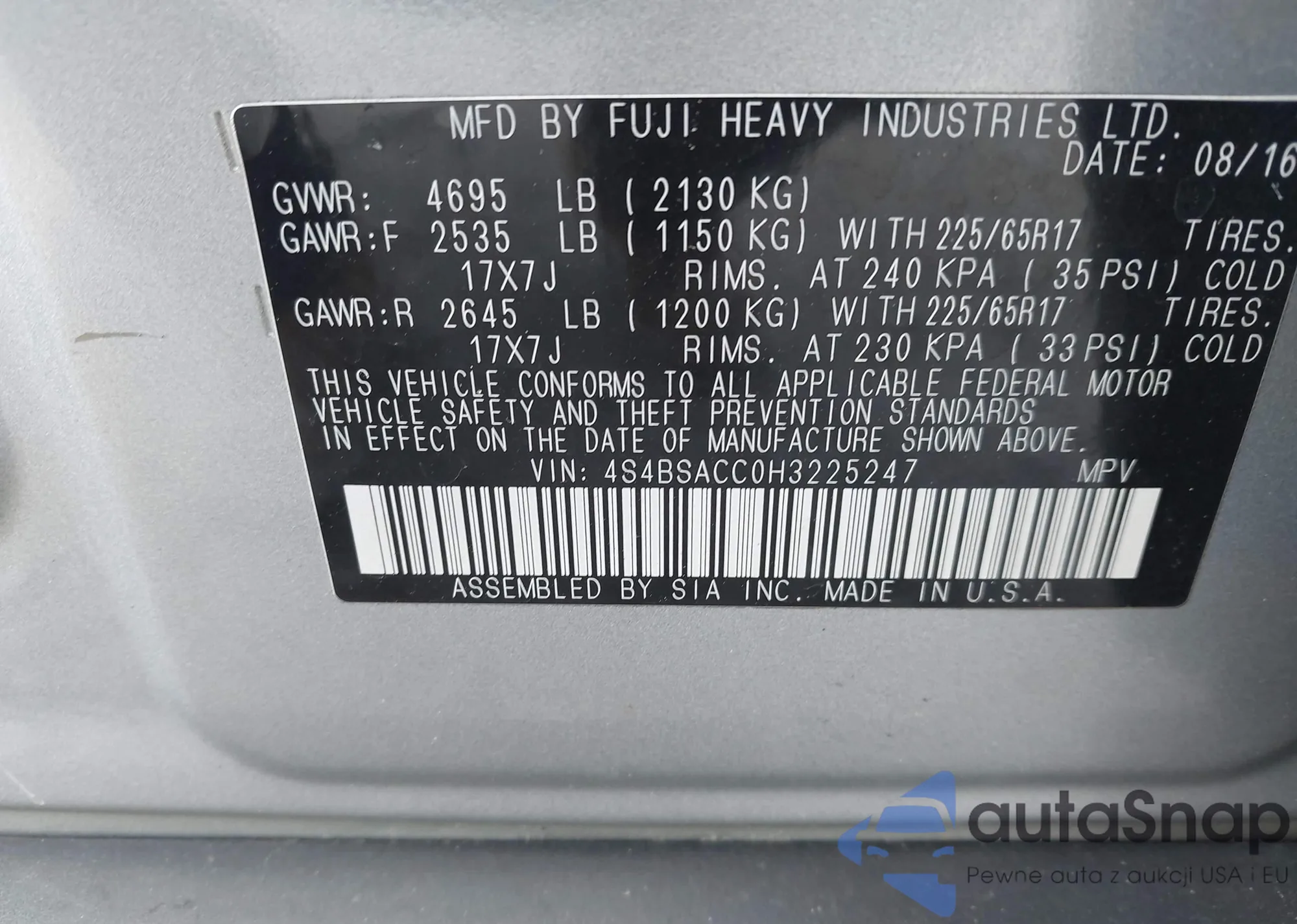 • VIN WAU43AFD0HN008748
