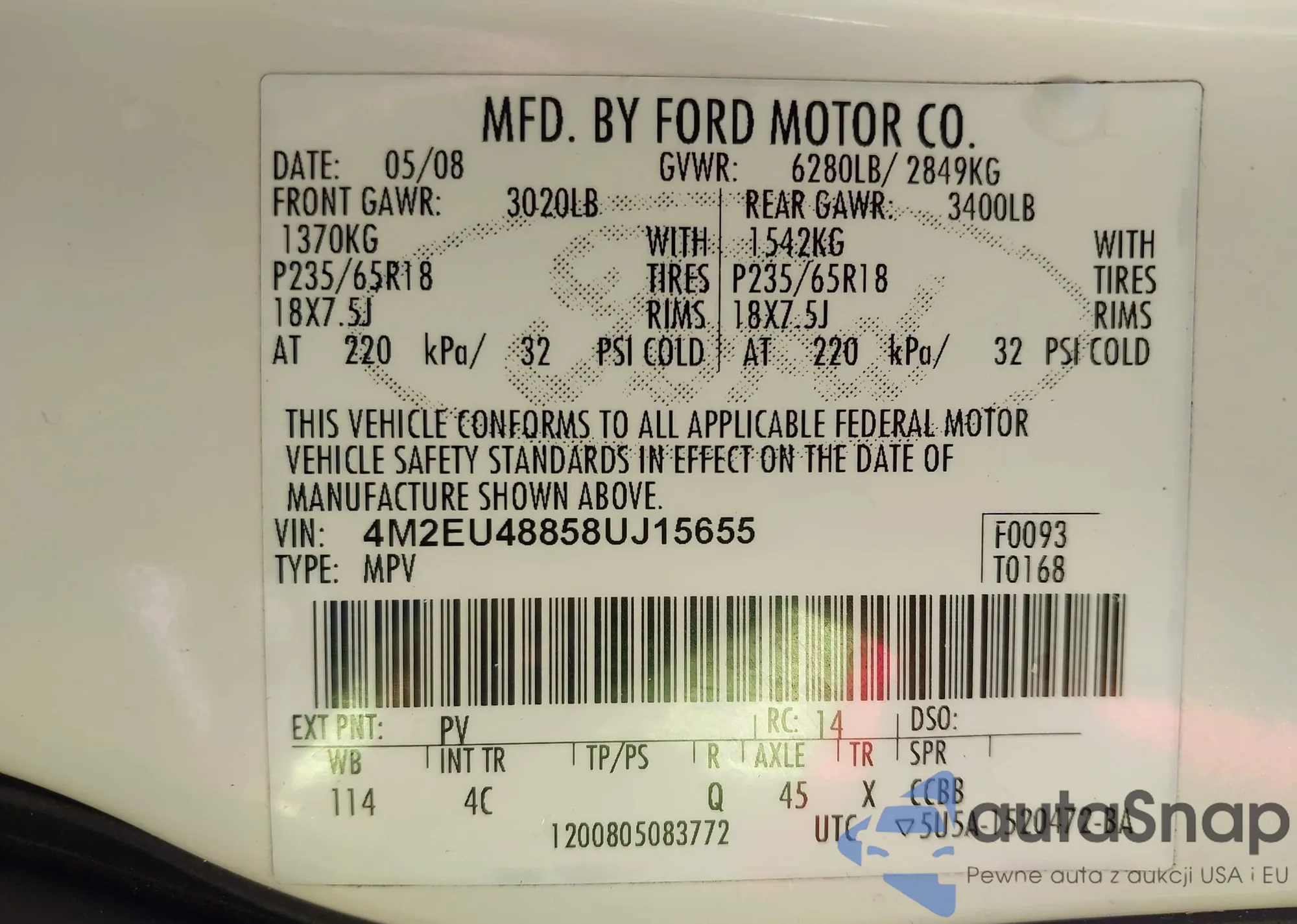 • VIN 1FMEU75EX7UB66211