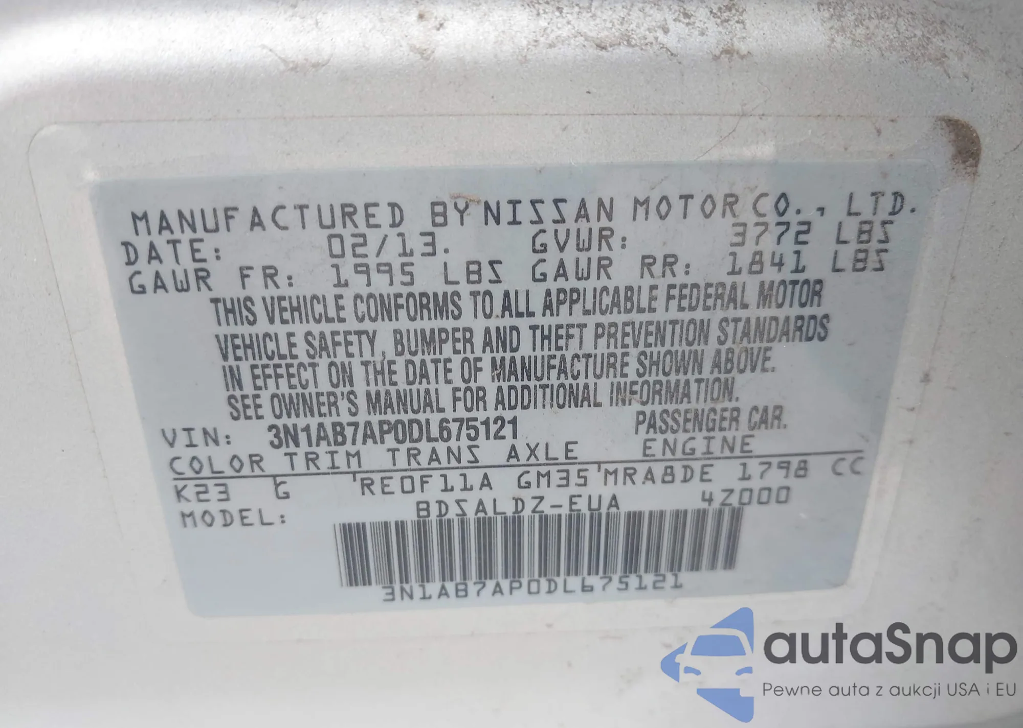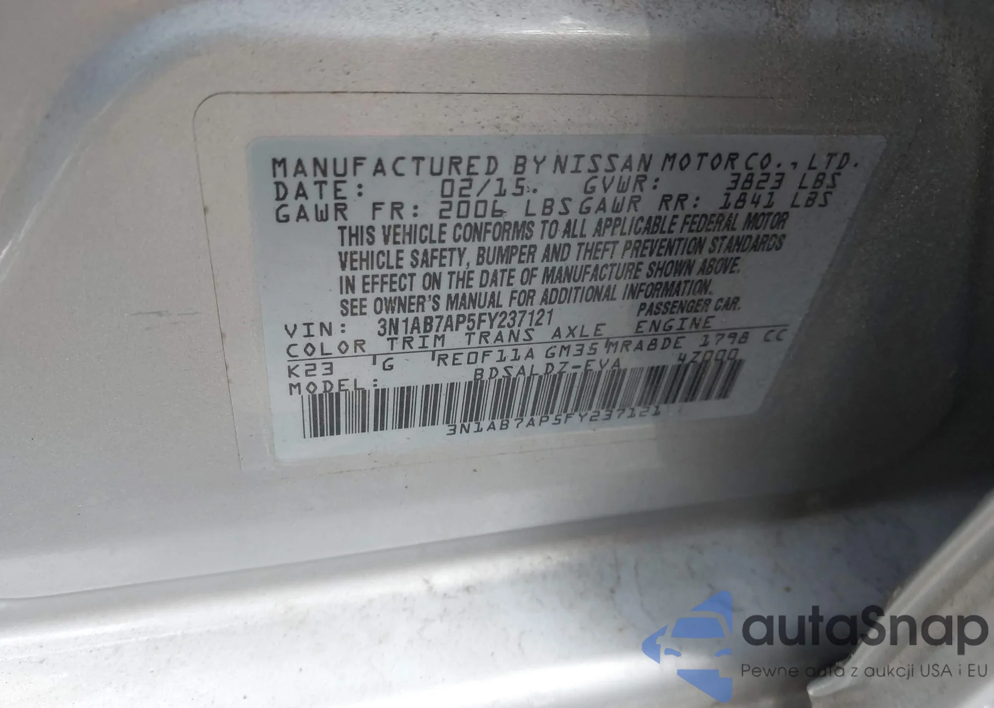• VIN 3N1AB7AP5FY237121