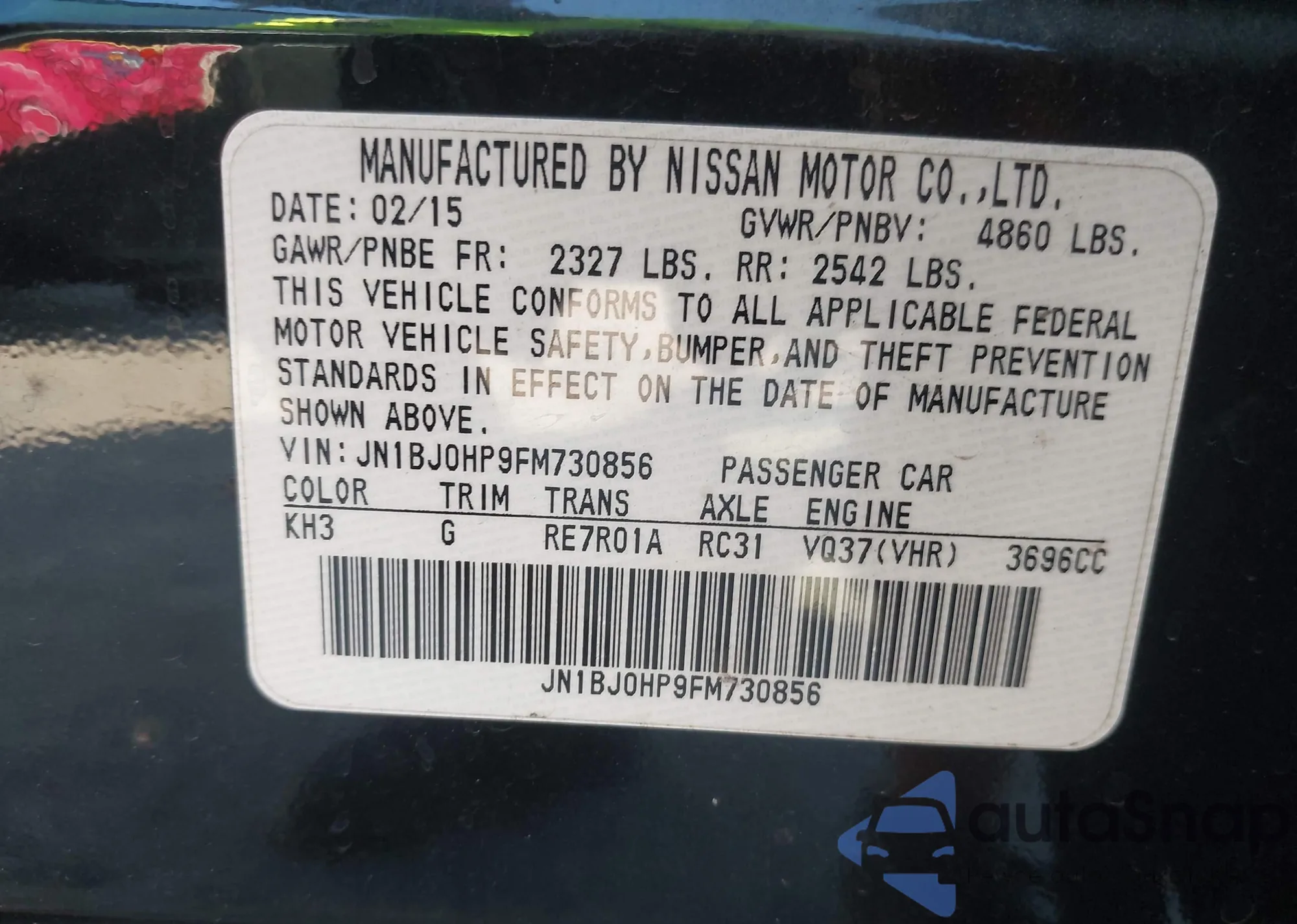 LOT: 43384306 VIN: JN1BJ0HP9FM730856