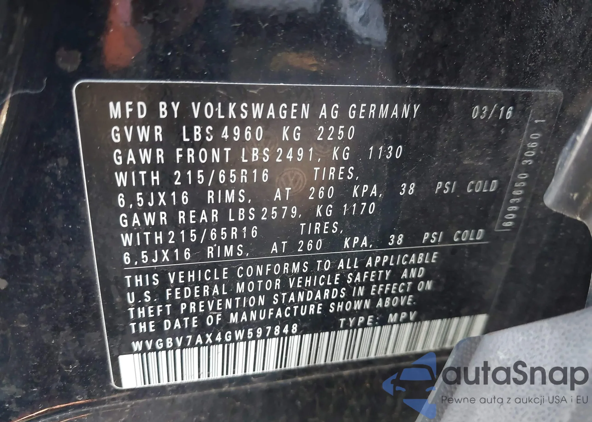 LOT: 43573222 VIN: 1HGCP2F8XCA062569
