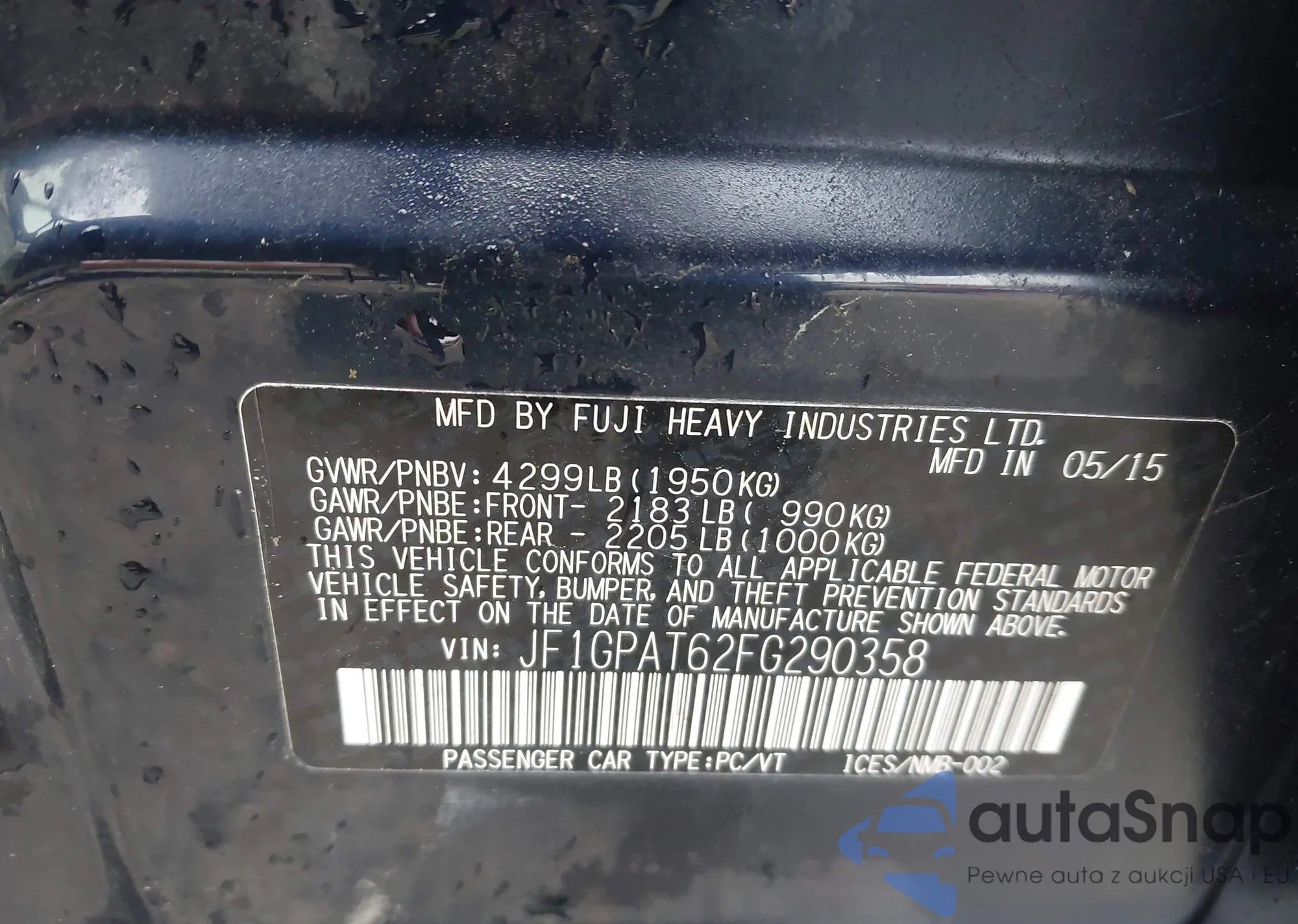 • VIN 1C4PJLCS8FW537280