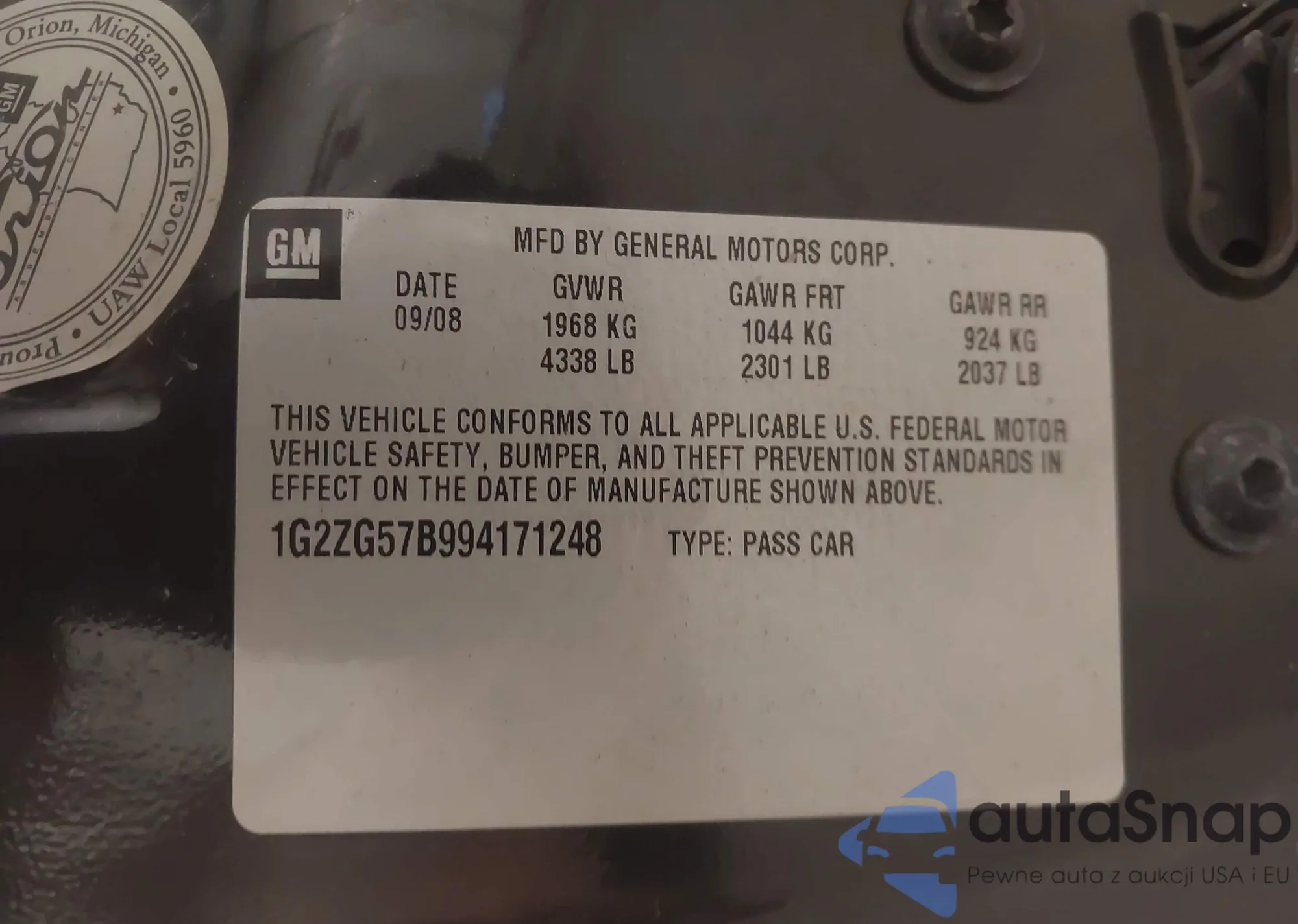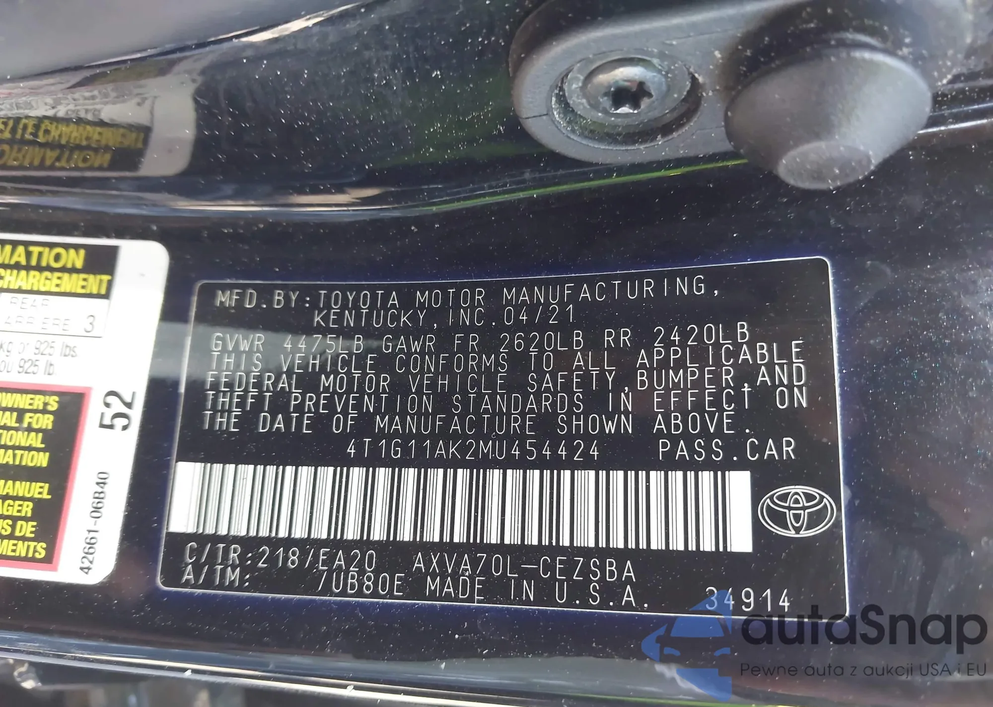 • VIN 4T1G11AK2MU454424