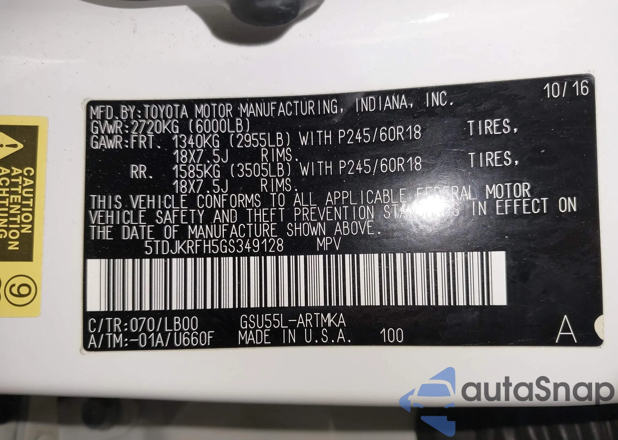 • VIN 5TDJKRFH5GS349128