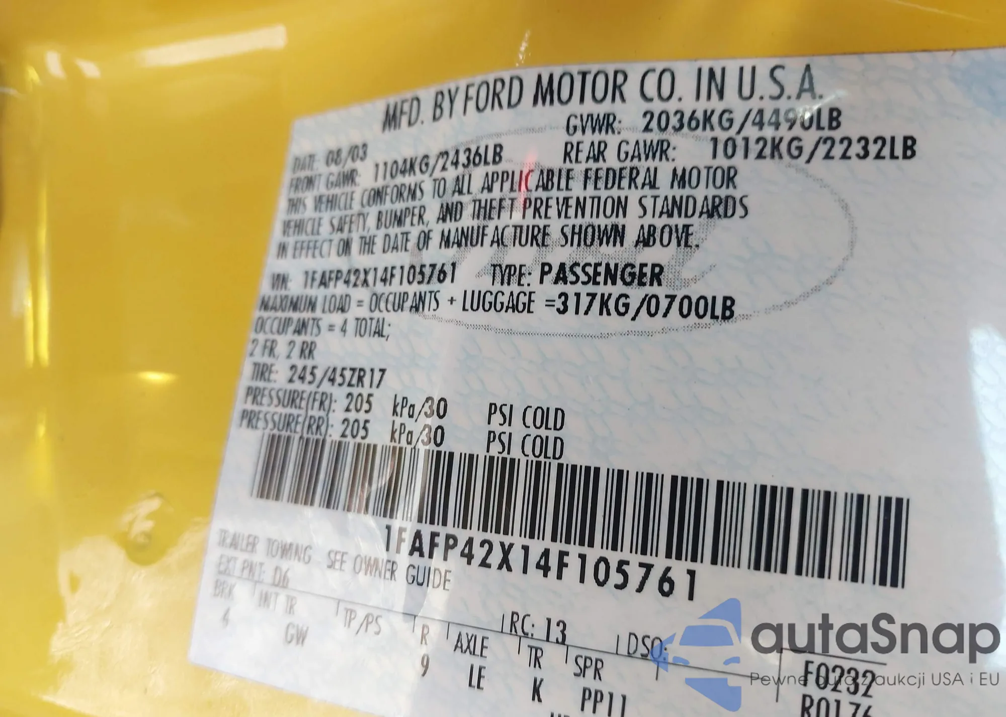 LOT: 43247868 VIN: 1FMEU62E56UA53327