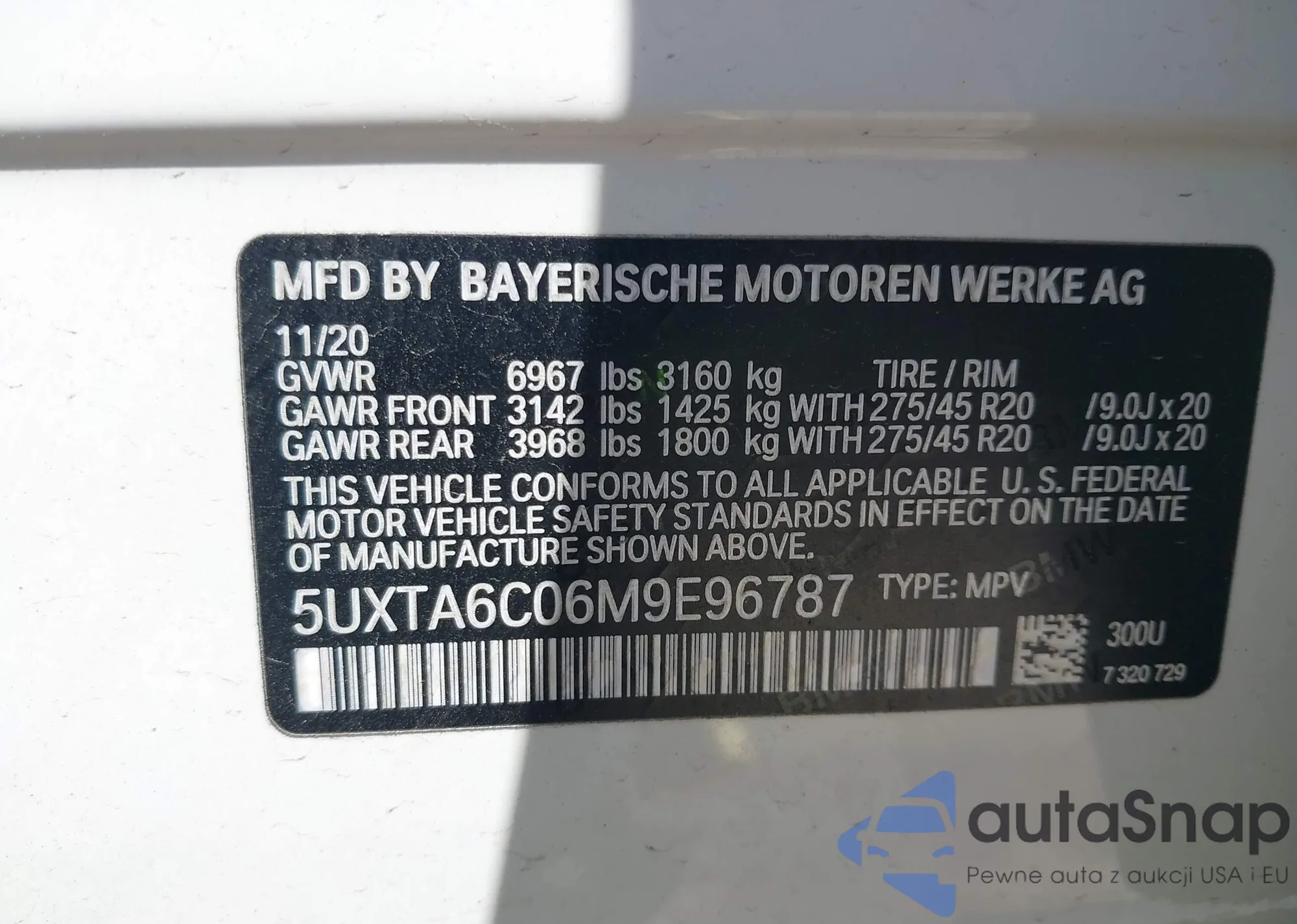 • VIN 5UXTA6C06M9E96787