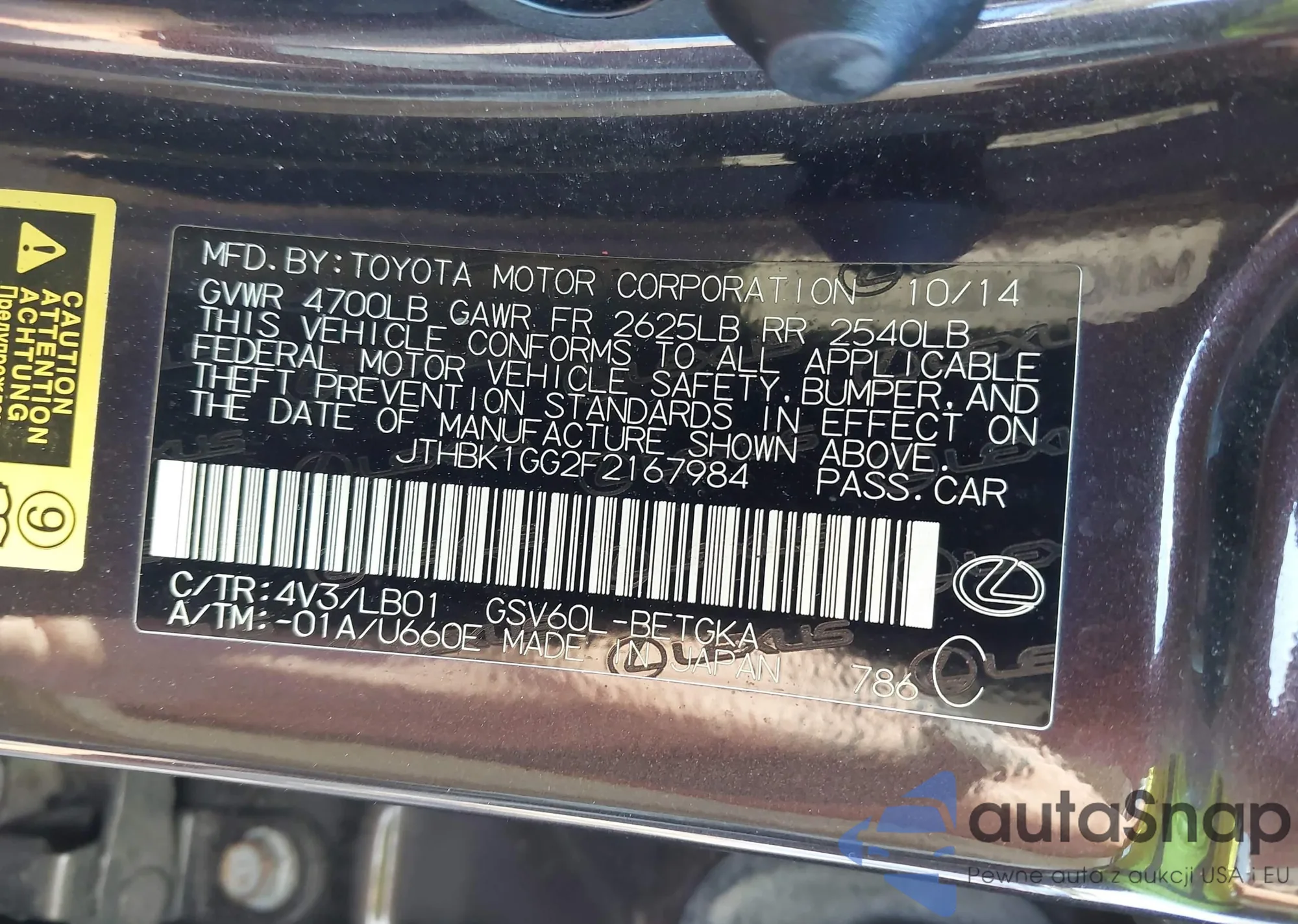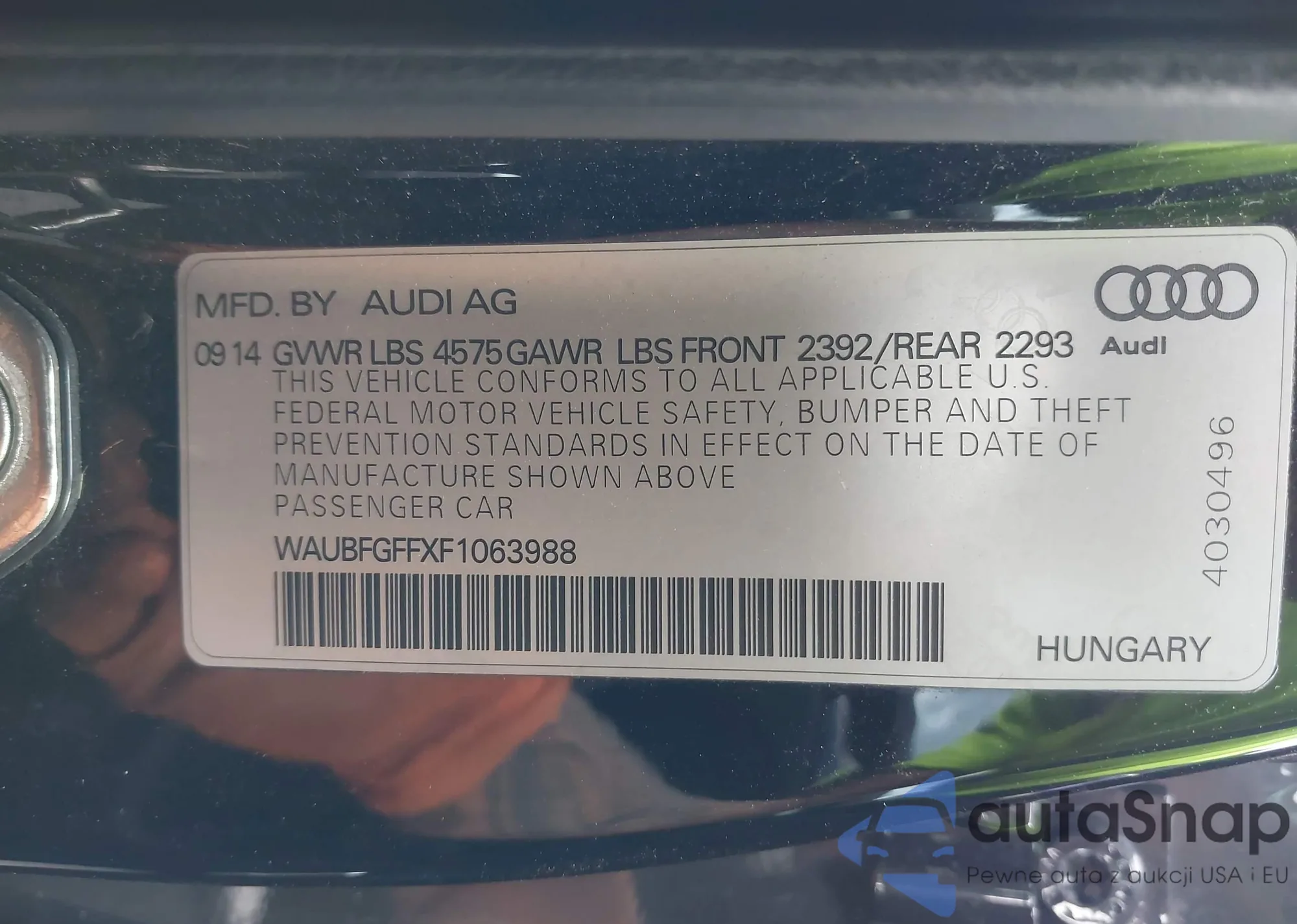 LOT: 43560470 VIN: WAUBFGFFXF1063988