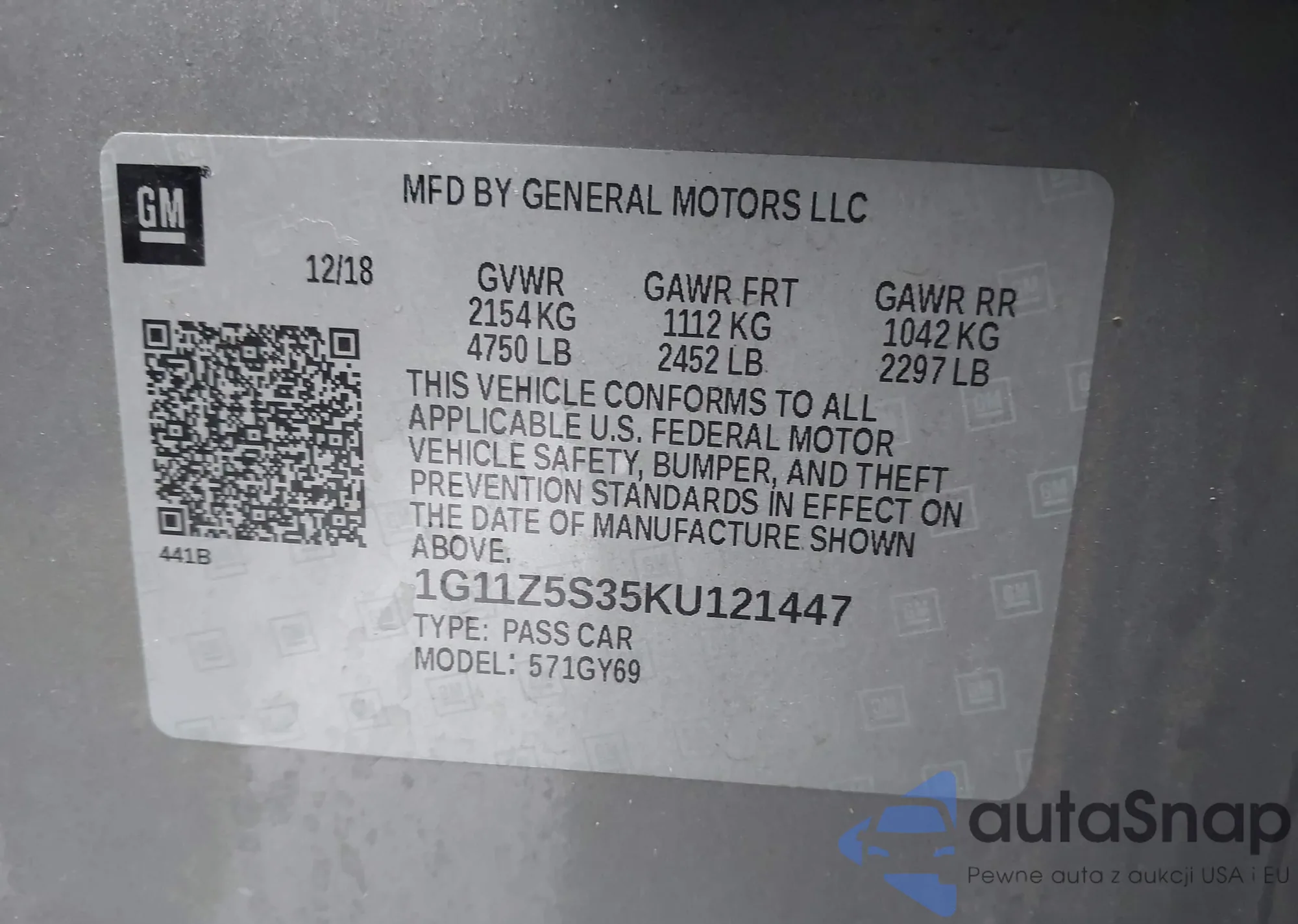 • VIN 1G11Z5S35KU121447