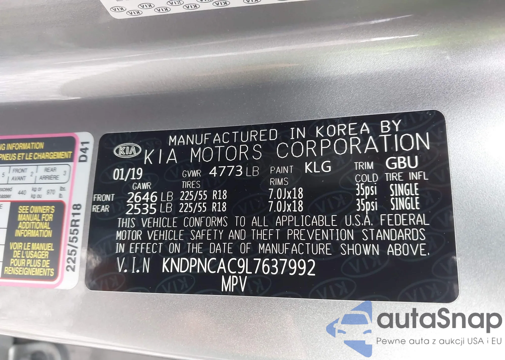 • VIN KNDPNCAC9L7637992