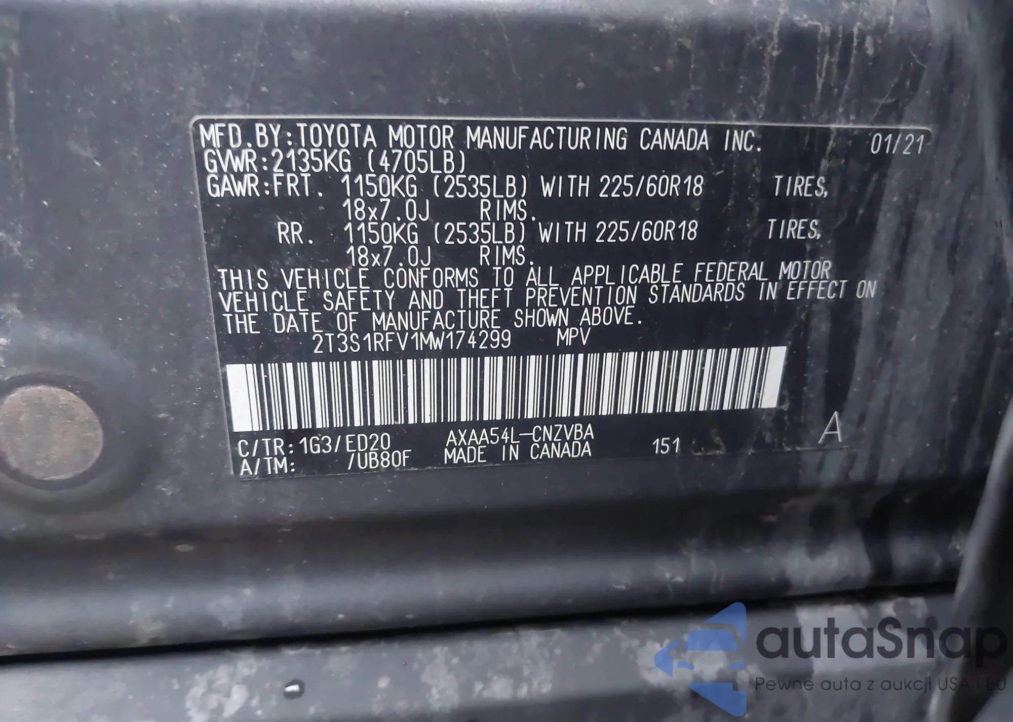 LOT: 43786171 VIN: 2T3S1RFV1MW174299