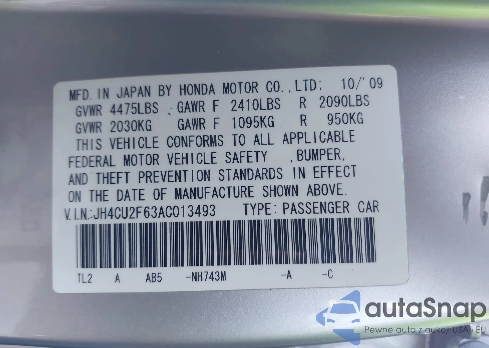 • VIN JF2SHGAC9DH410274