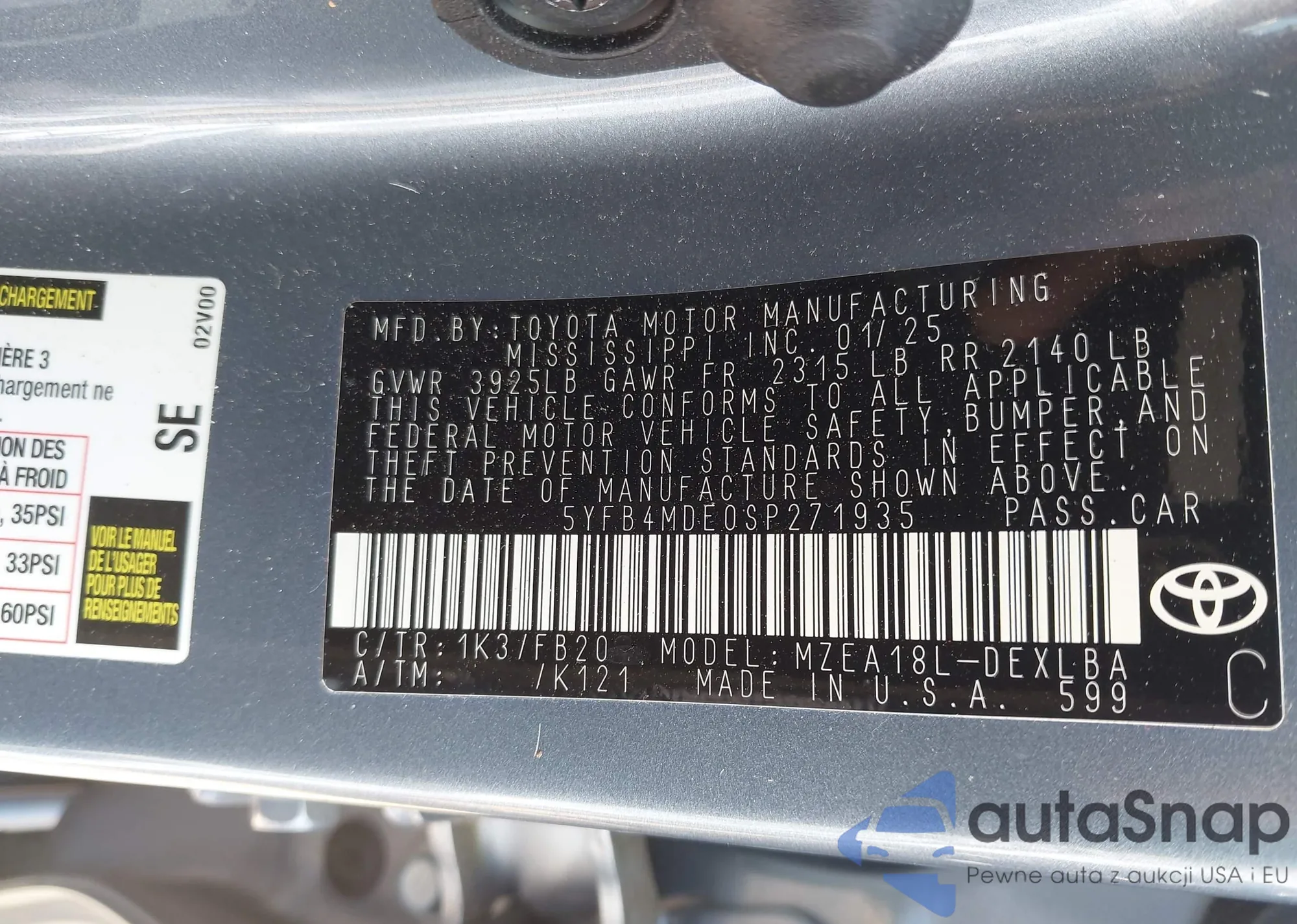 • VIN 5YFB4MDE0SP271935