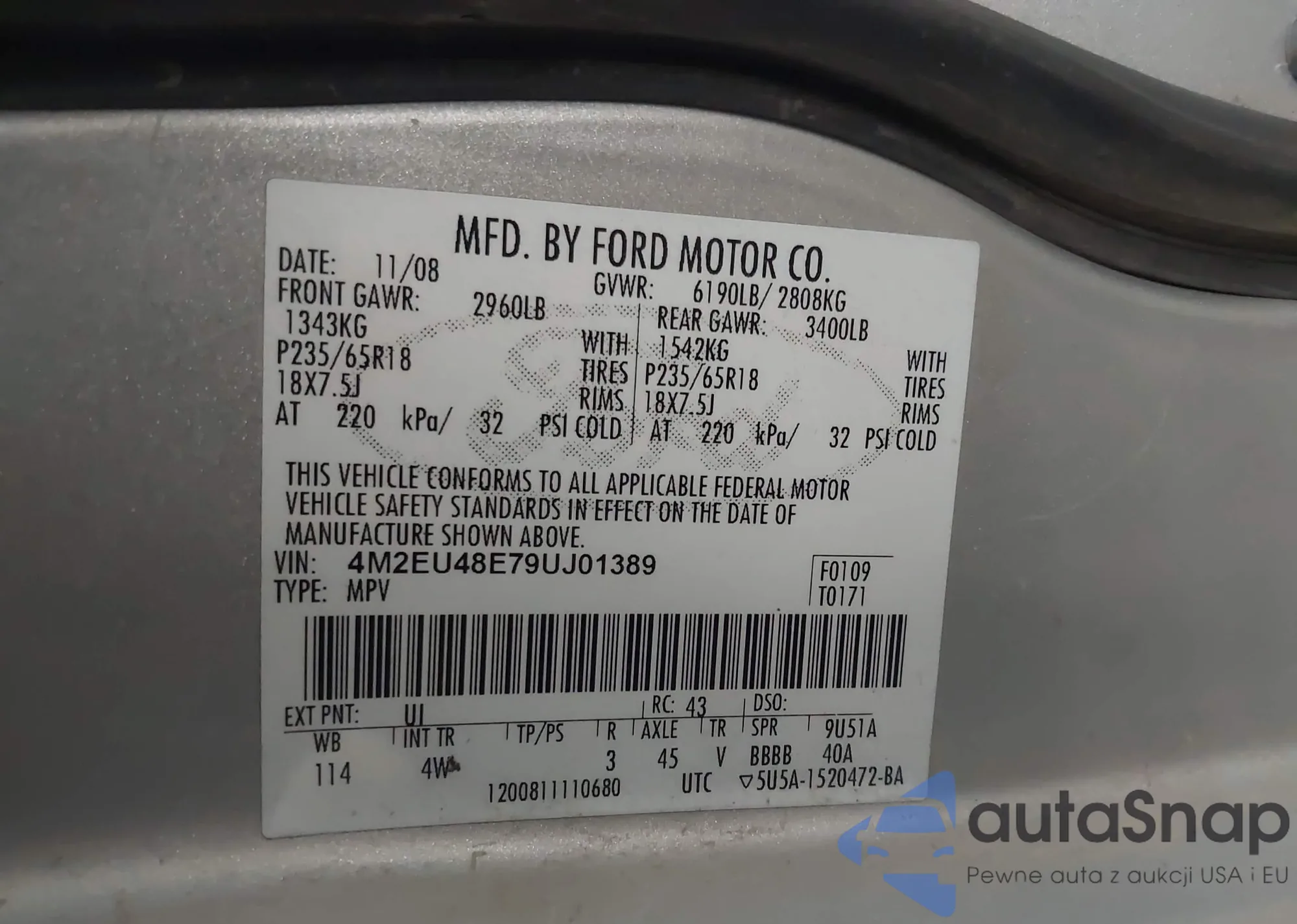 • VIN 2FMPK3K80HBC63186