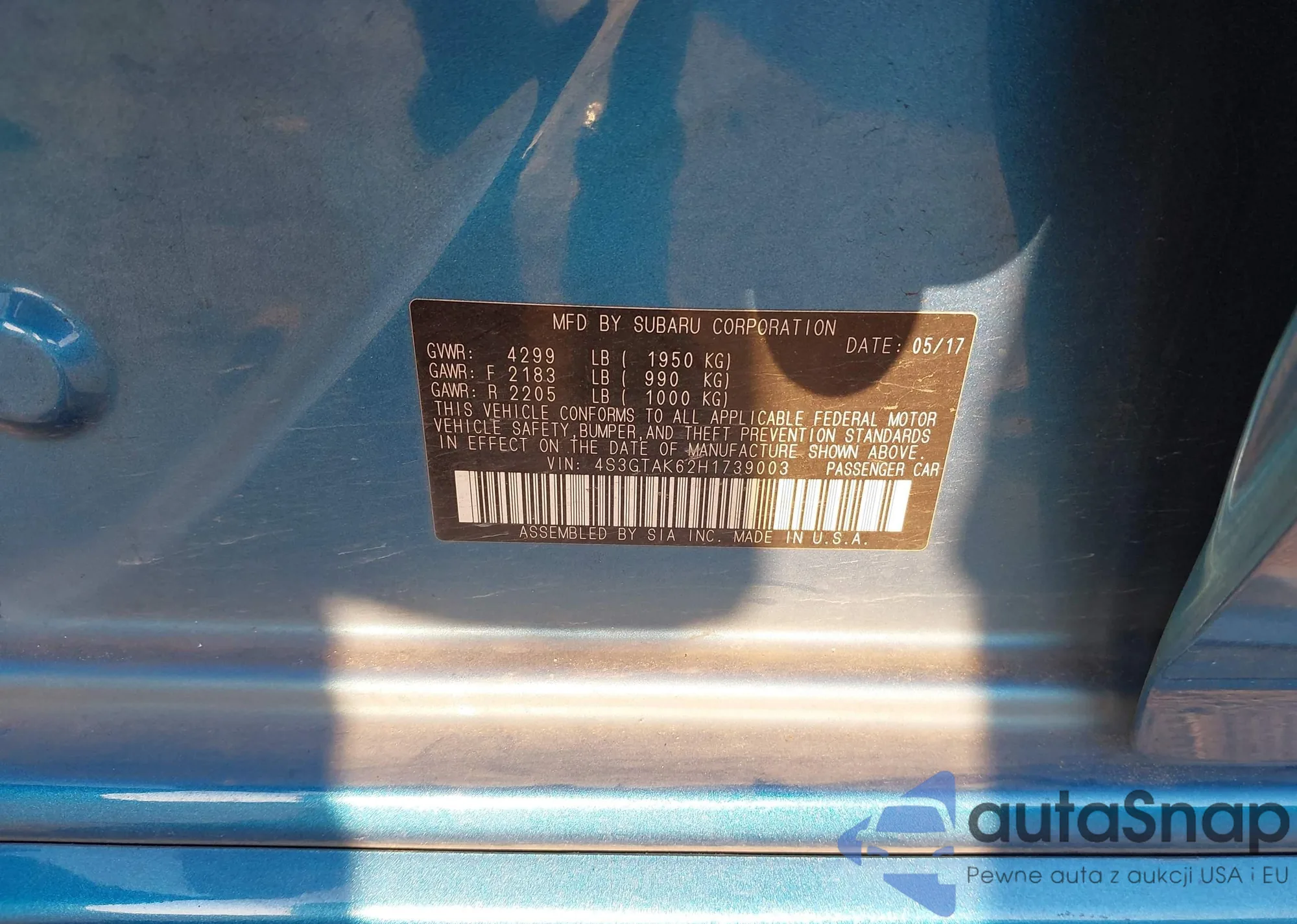 • VIN 4S3GTAK62H1739003