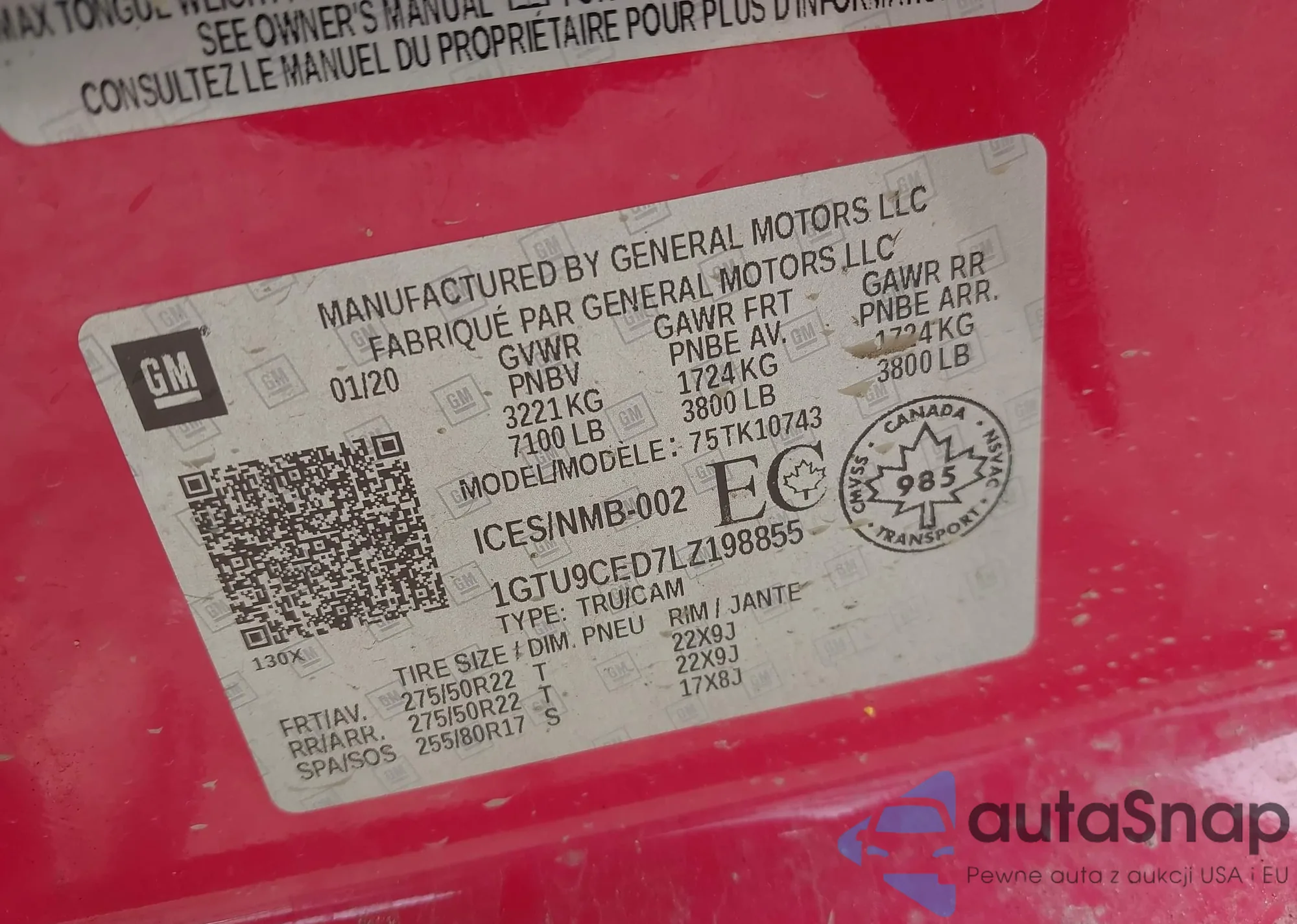 • VIN 1GTU9CED7LZ198855