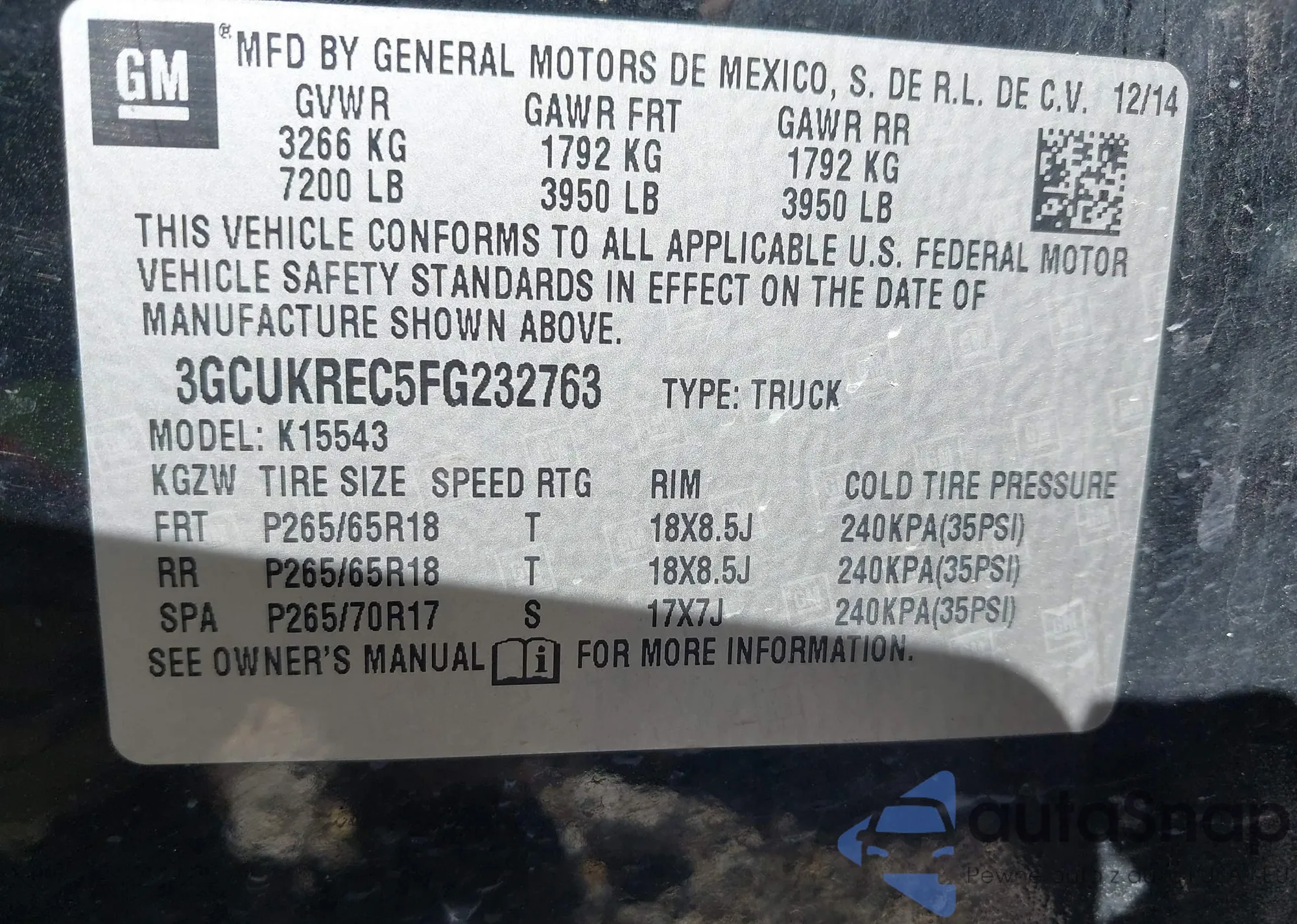 • VIN 3GCUKREC5FG232763