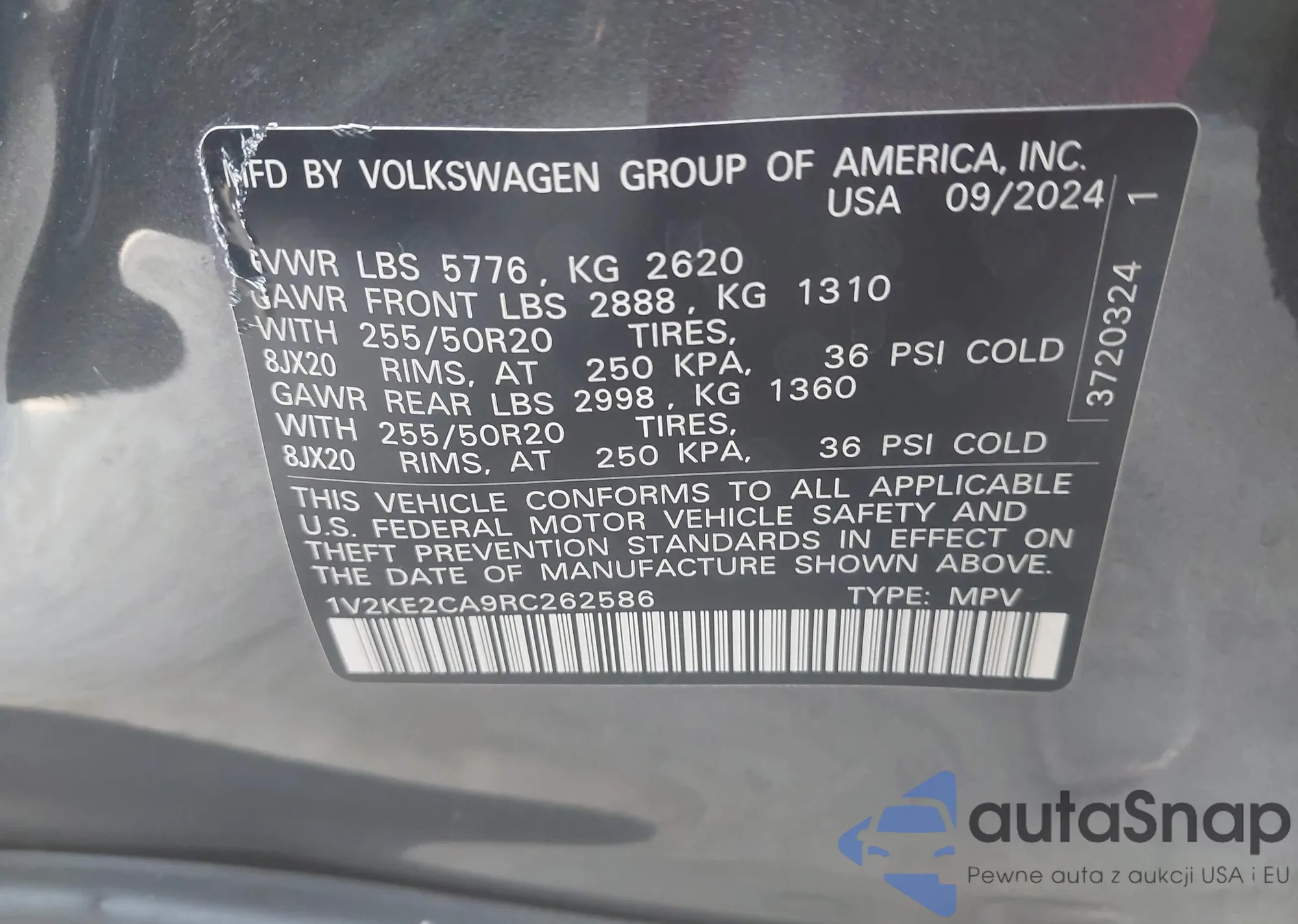 • VIN 1V2KE2CA9RC262586