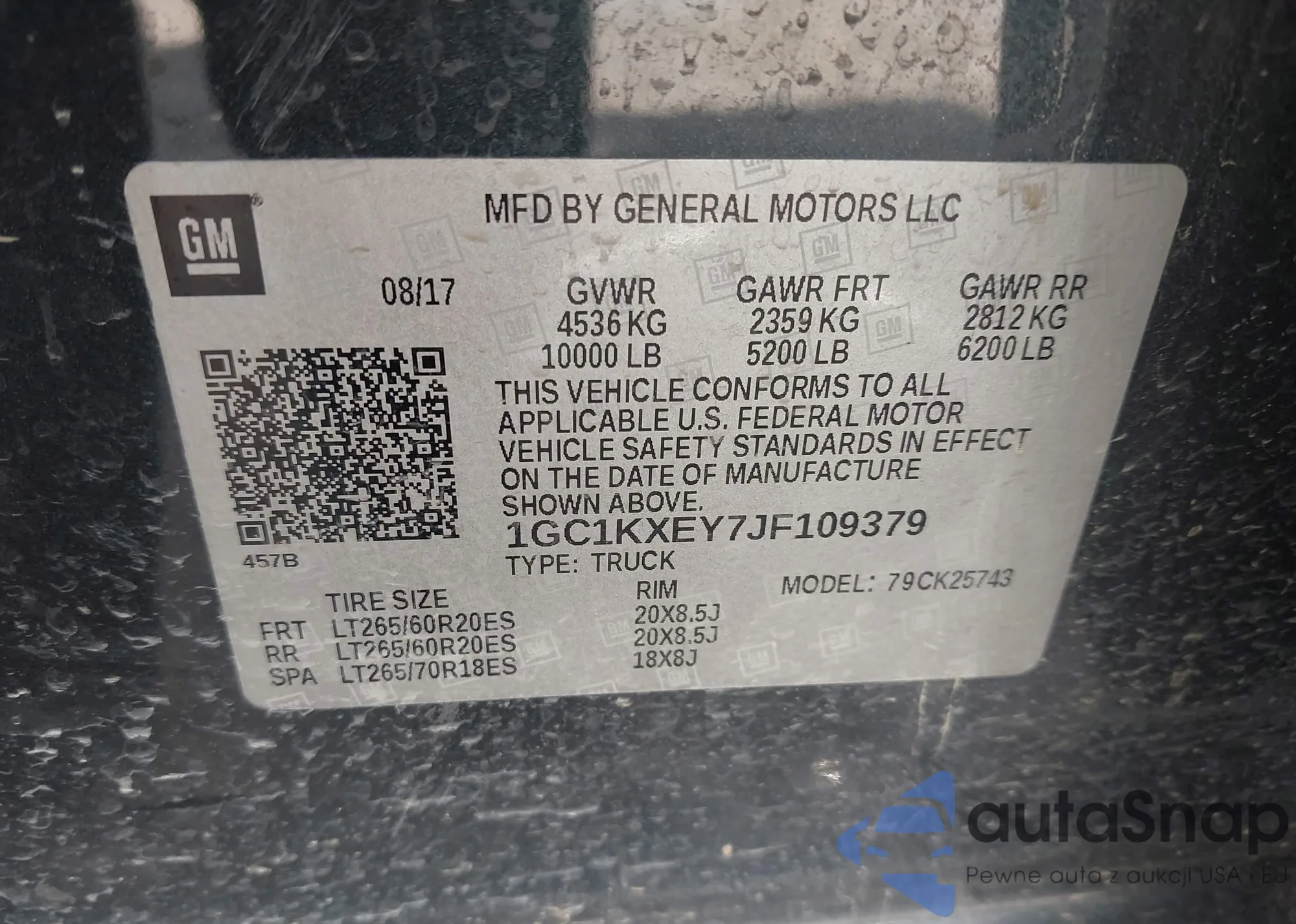 • VIN 1GC1KXEY7JF109379