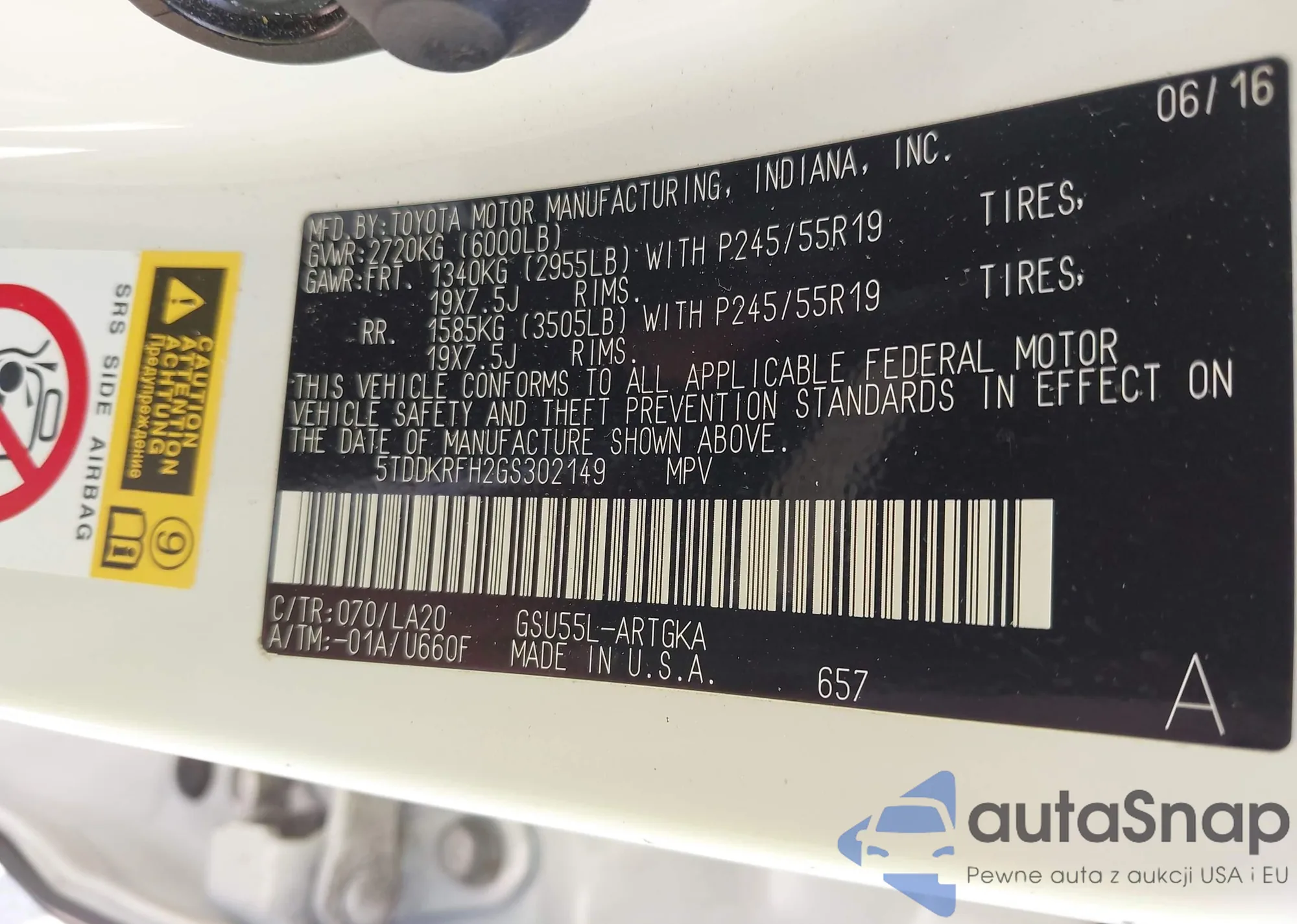 LOT: 43229670 VIN: 5TDDKRFH2GS302149
