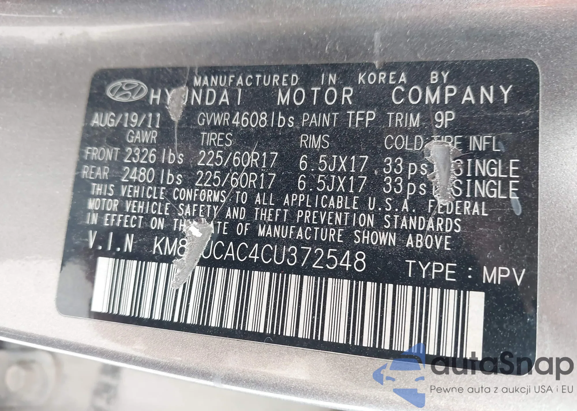 • VIN KM8JUCAC4CU372548