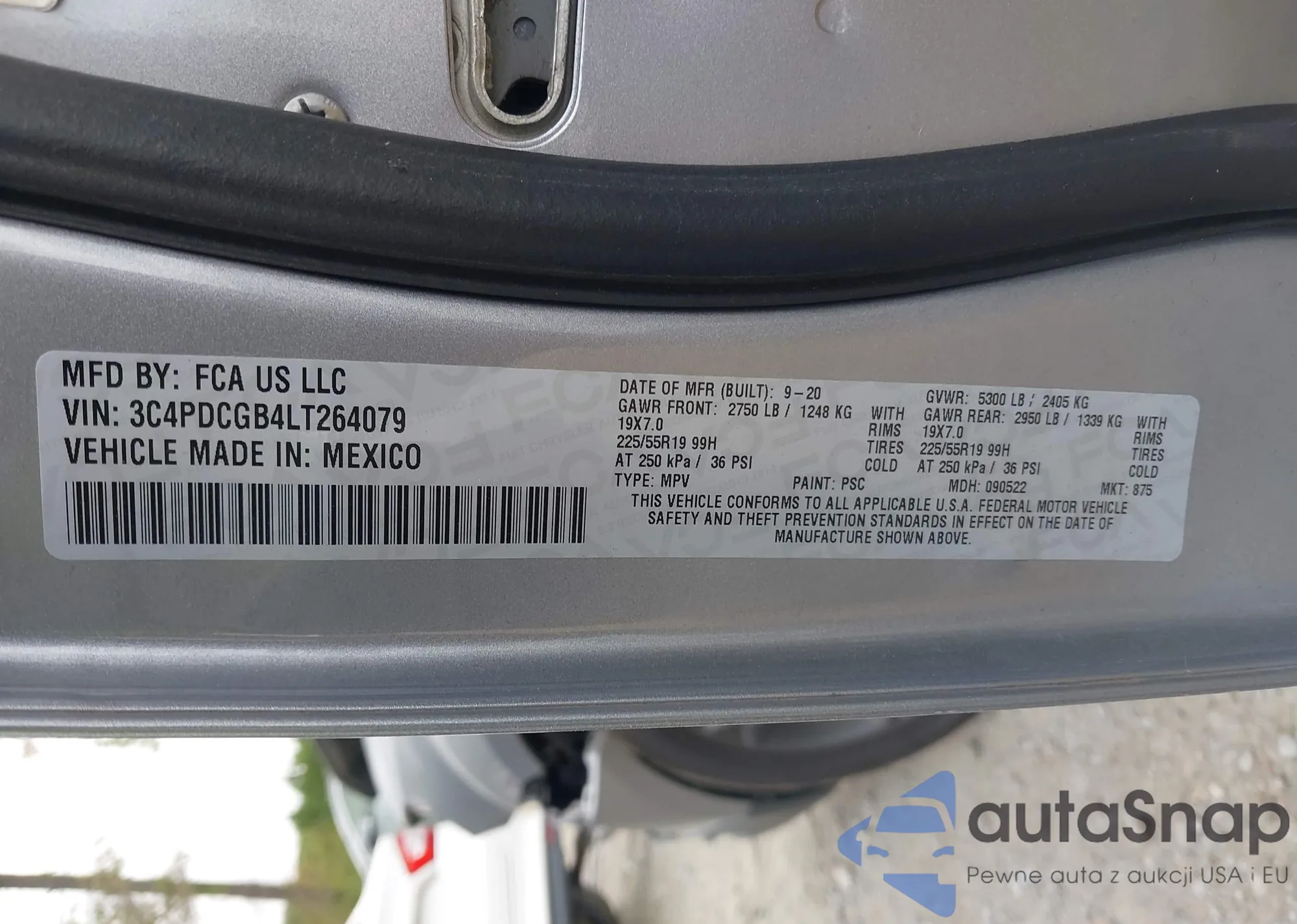 LOT: 43362336 VIN: 3C4PDCGB4LT264079