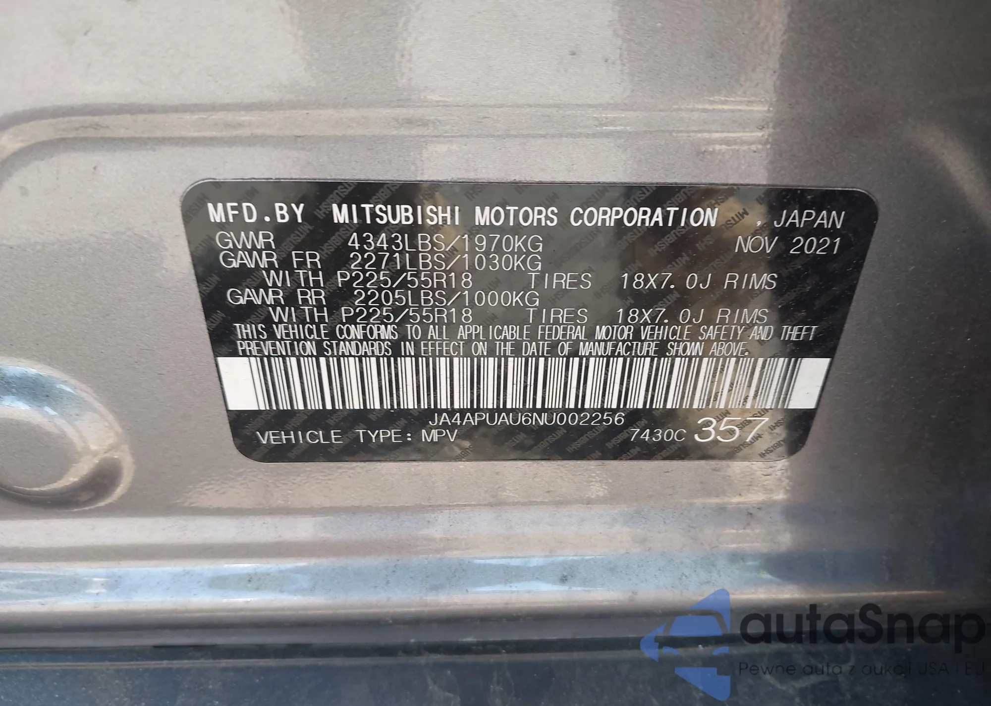• VIN JA4APUAU6NU002256