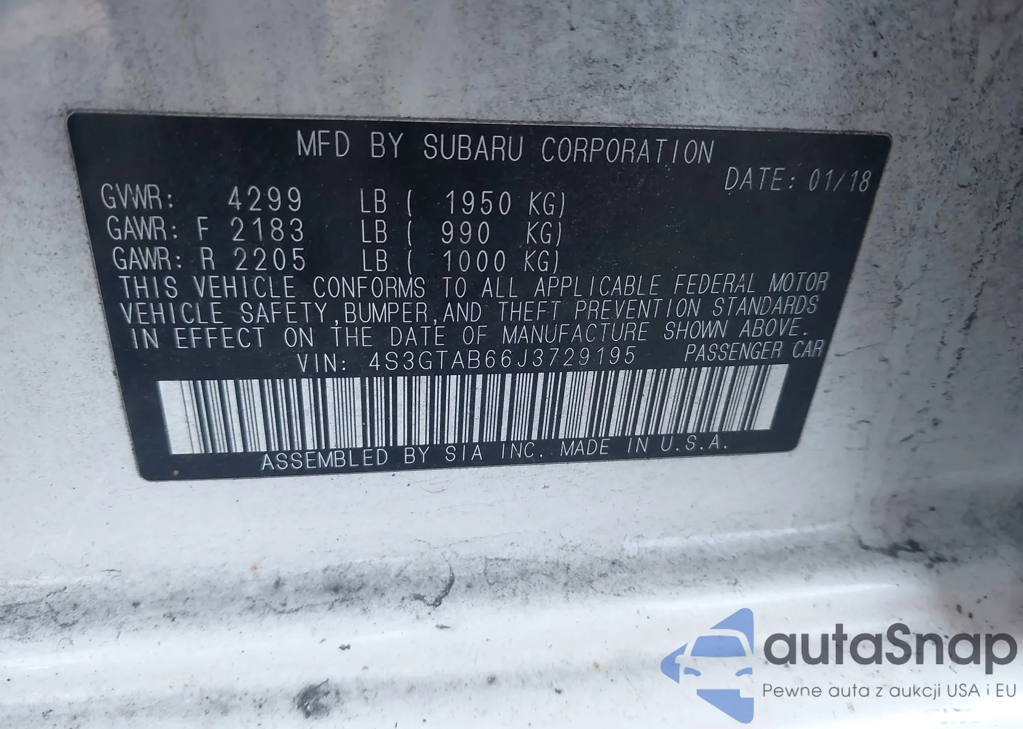 • VIN 4S3GTAB66J3729195