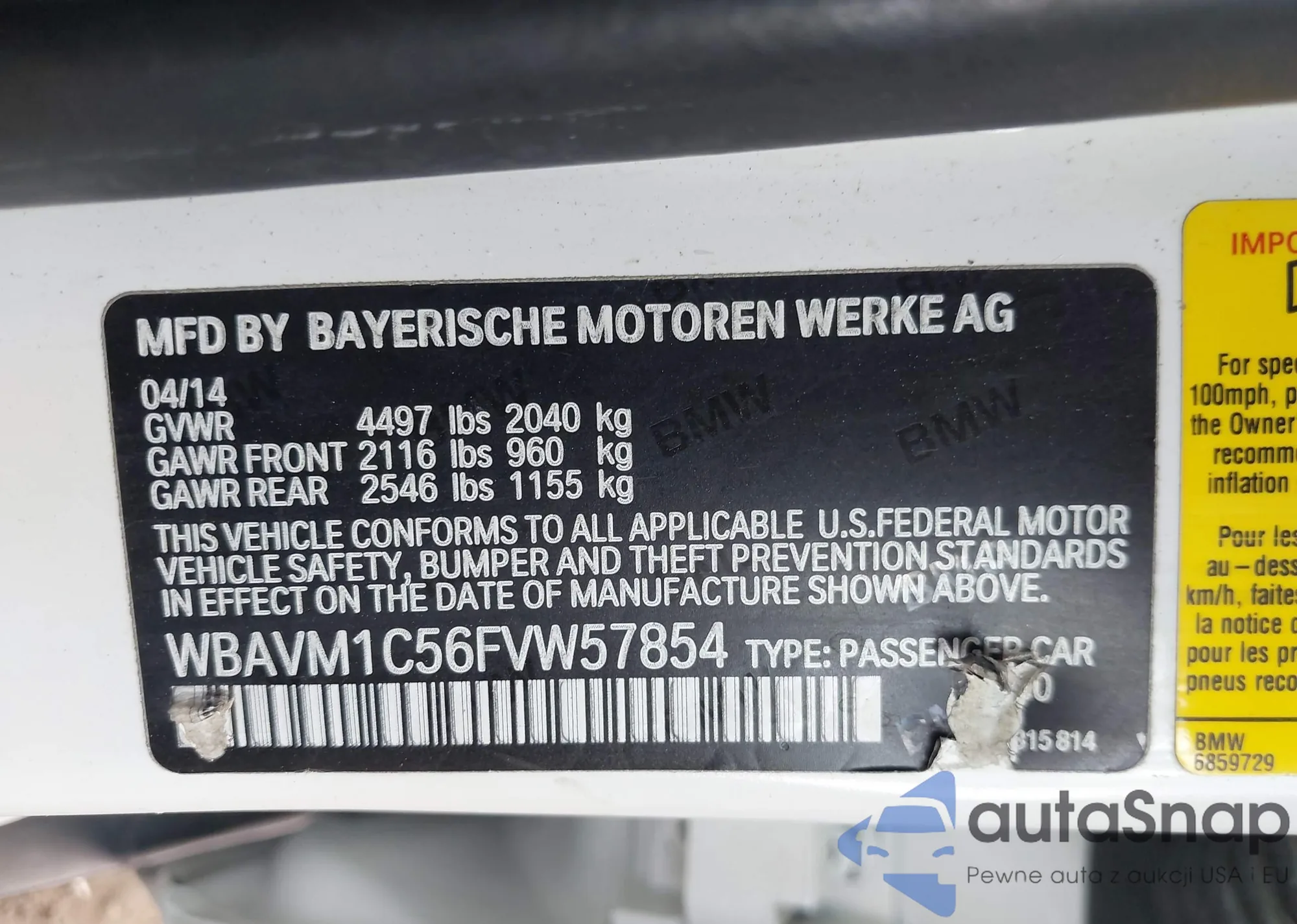 LOT: 43252976 VIN: WBAVM1C56FVW57854