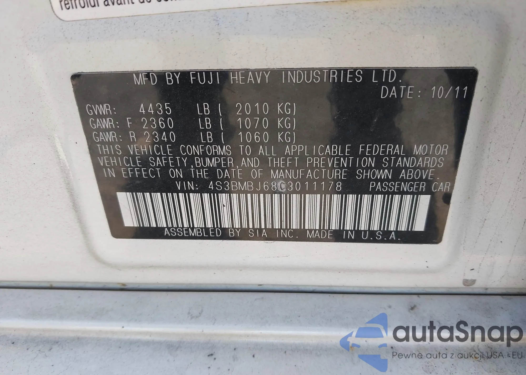 • VIN 4S3BMBJ68C3011178