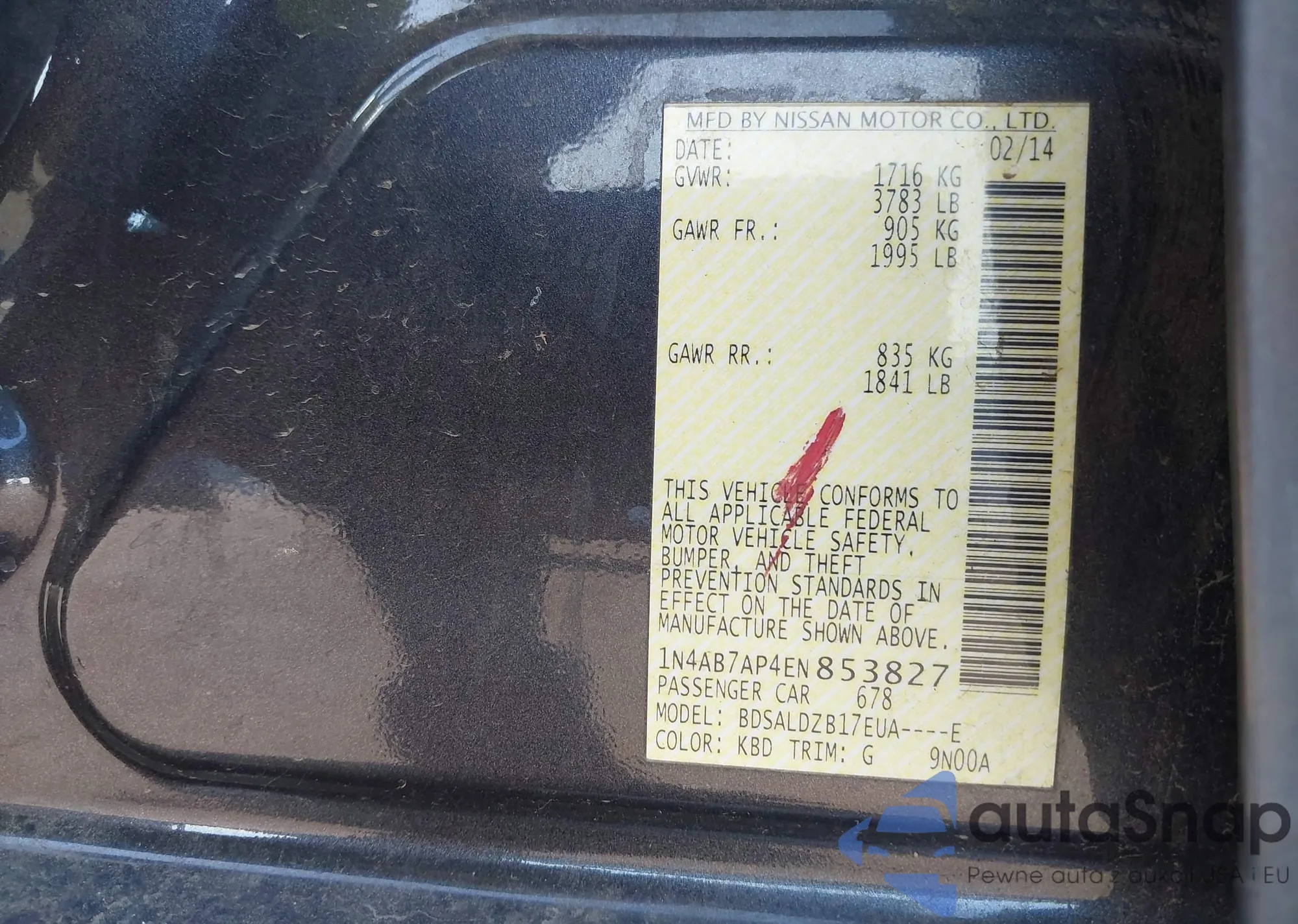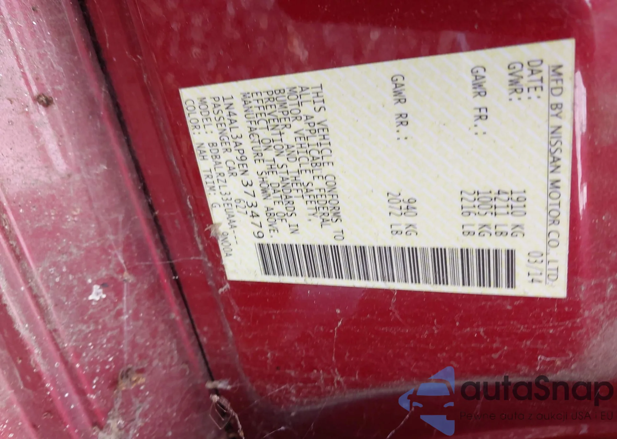 • VIN 1N4AL3AP9EN373479