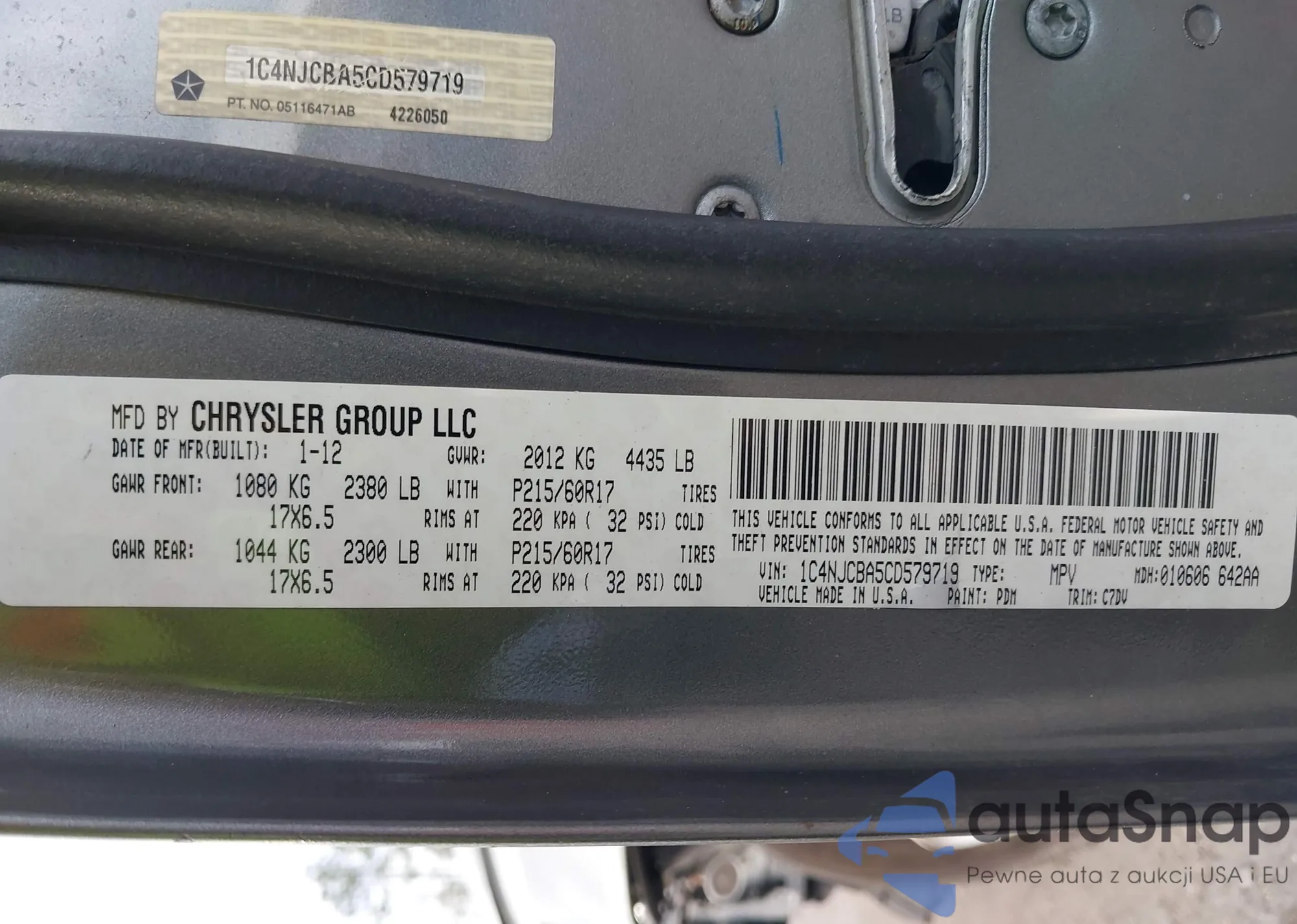 • VIN 1C4NJCBA5CD579719