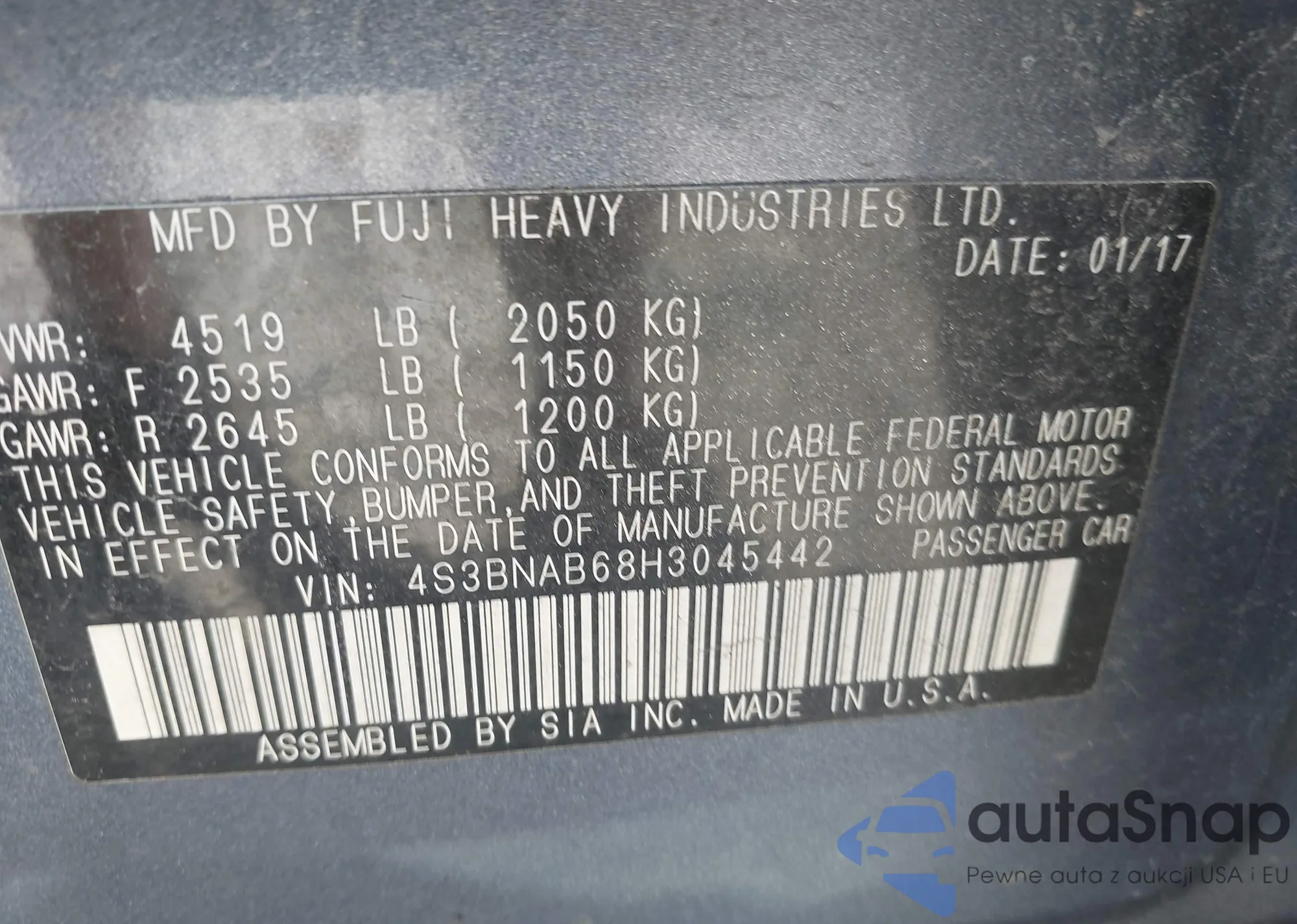 LOT: 43183620 VIN: 4S3BNAB68H3045442