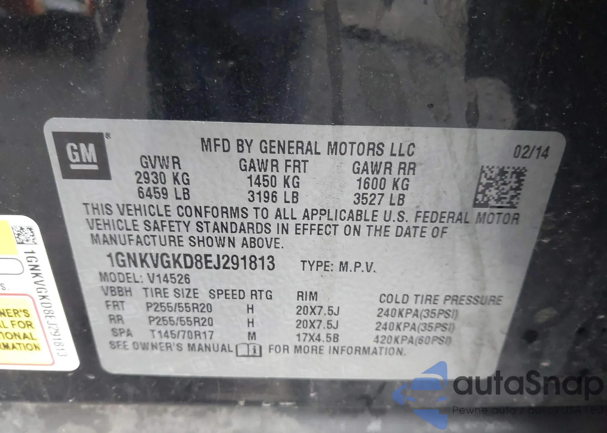 • VIN 1GNKVGKD8EJ291813