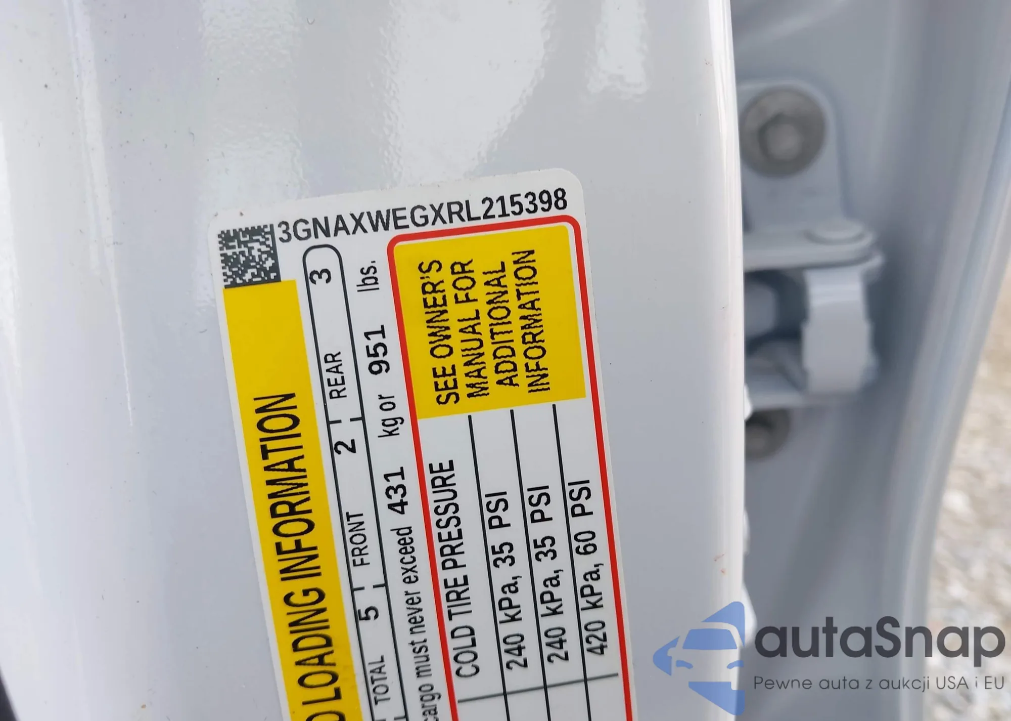 LOT: 43003309 VIN: 3GNAXWEGXRL215398