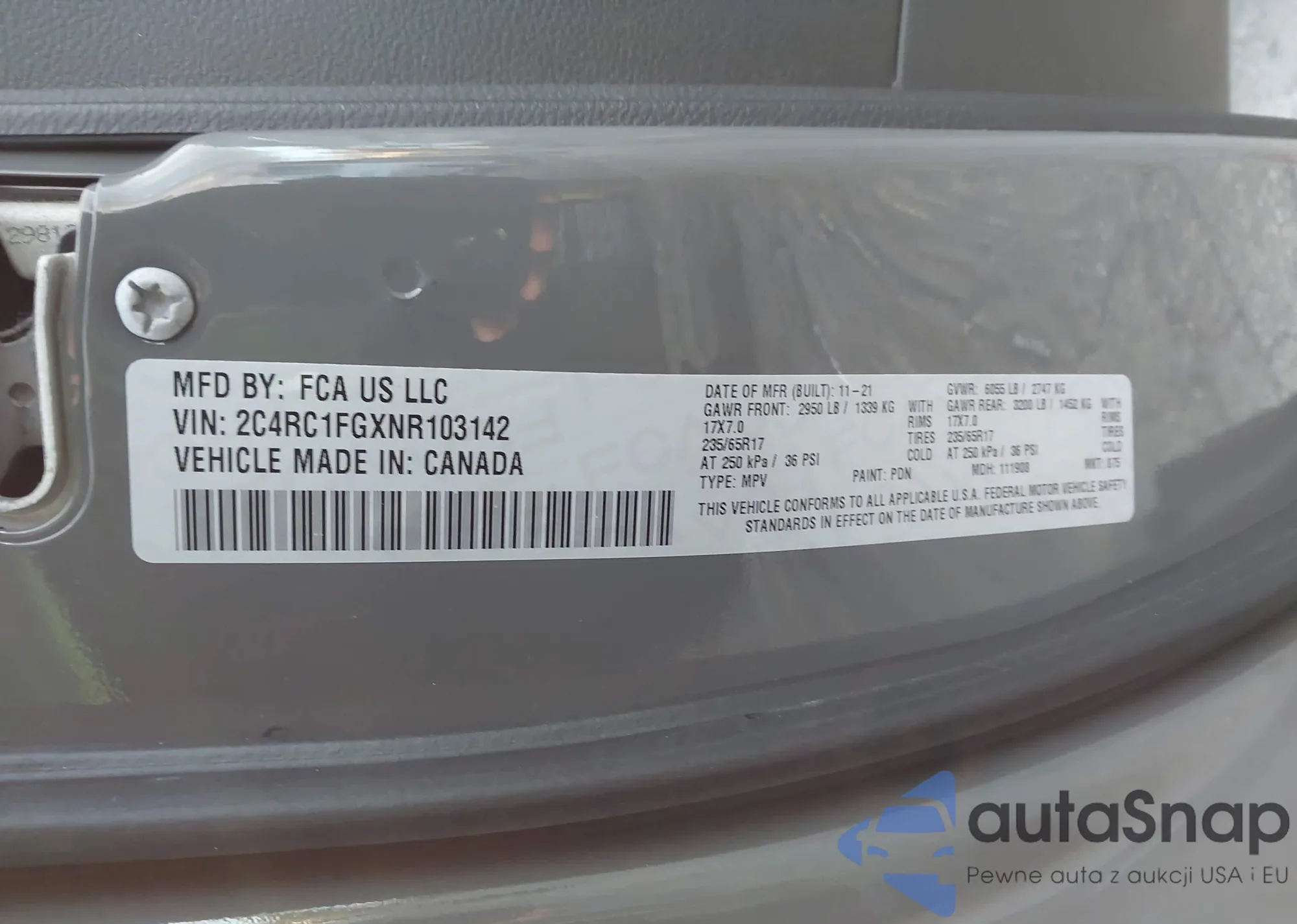 • VIN 2C4RC1FGXNR103142