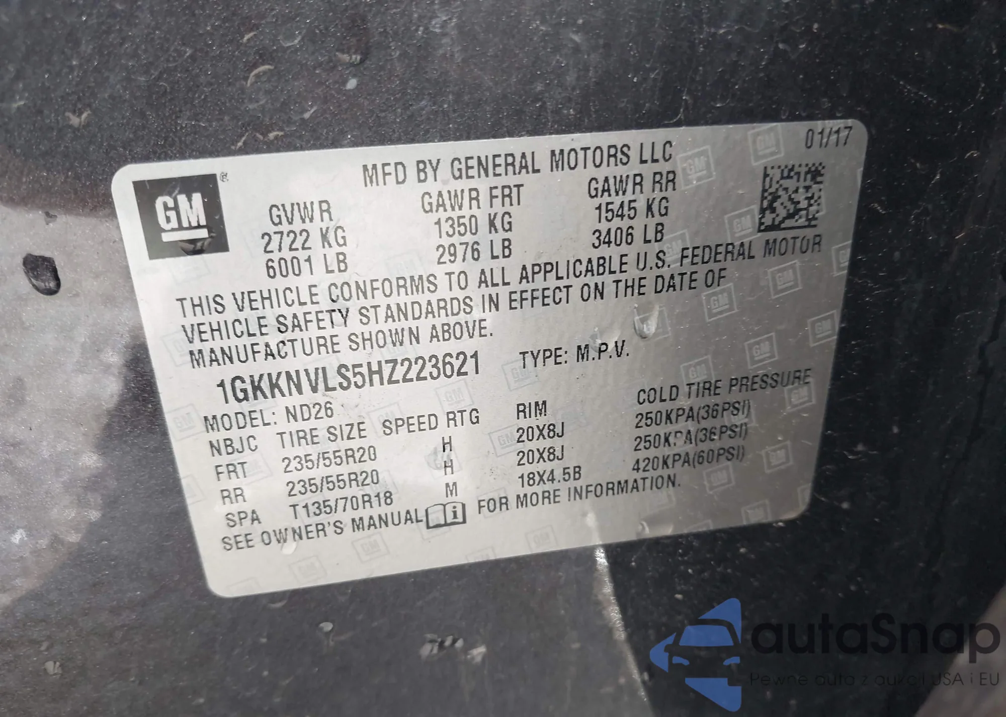 LOT: 42198383 VIN: 1GKKNVLS5HZ223621